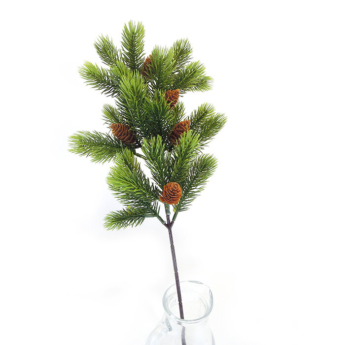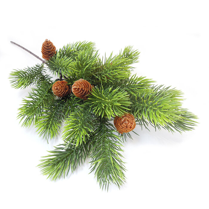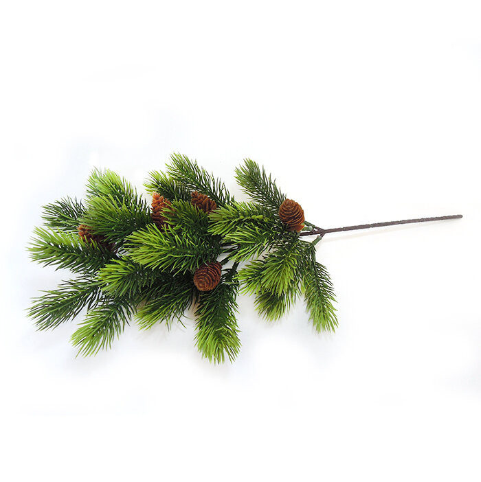 Ель, еловая ветка с шишками, искусственная, 45 см, цвет зеленая с патиной