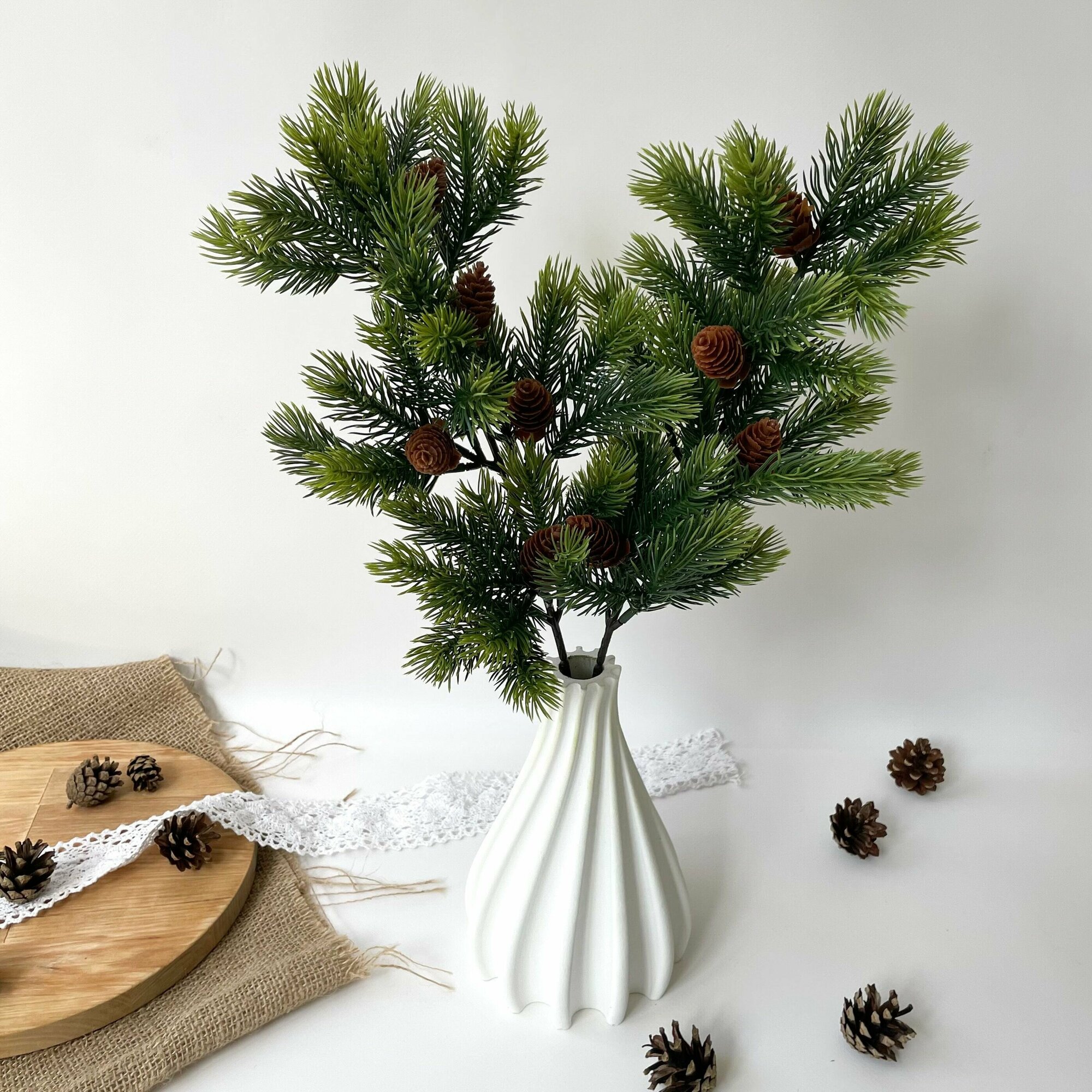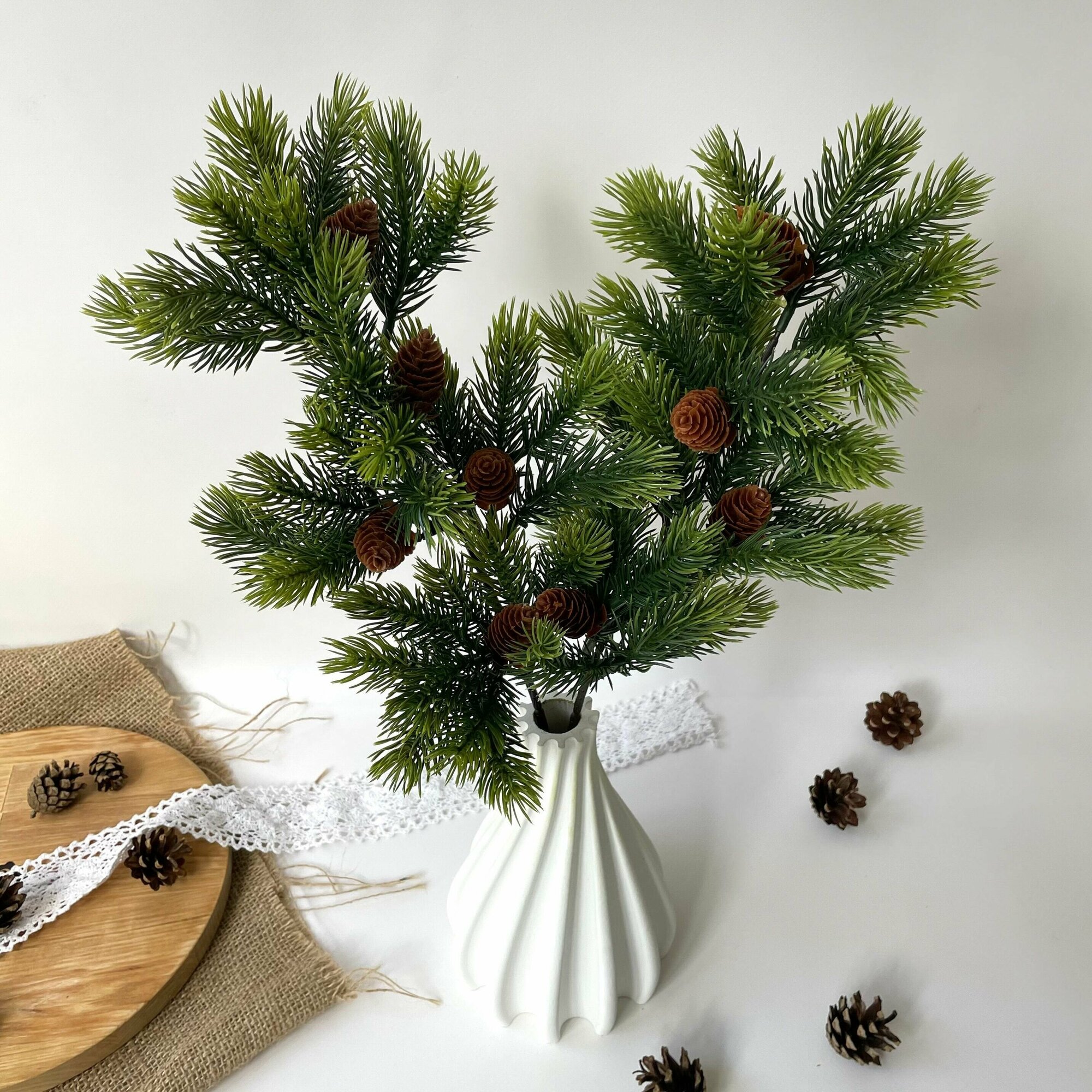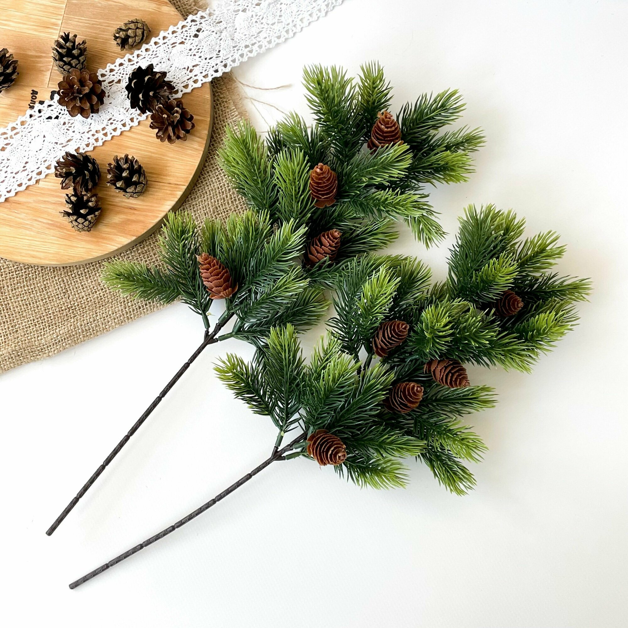 Купить Еловая ветка с шишками искусственная, декор зимний, рождественский, 2 ветки, 47 см