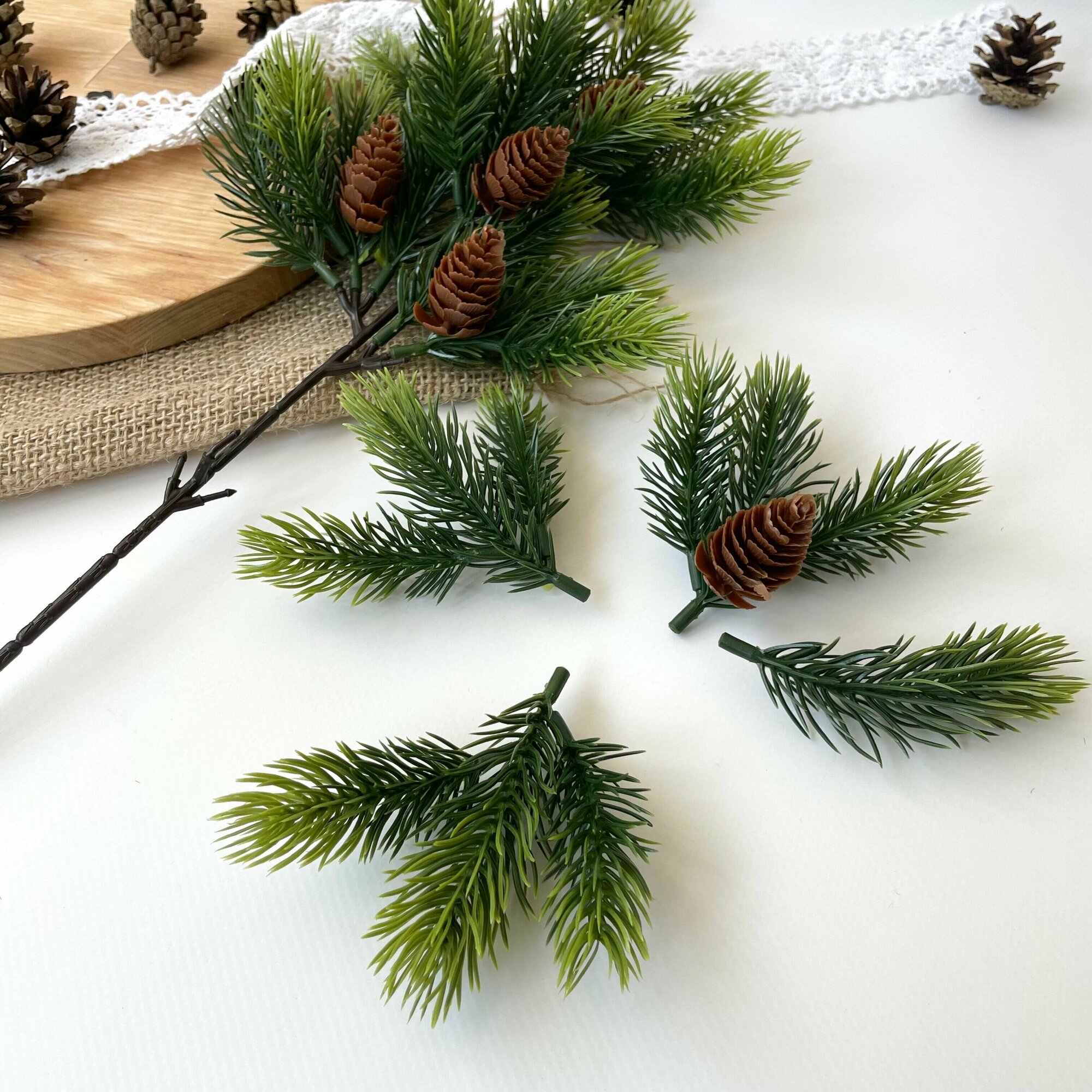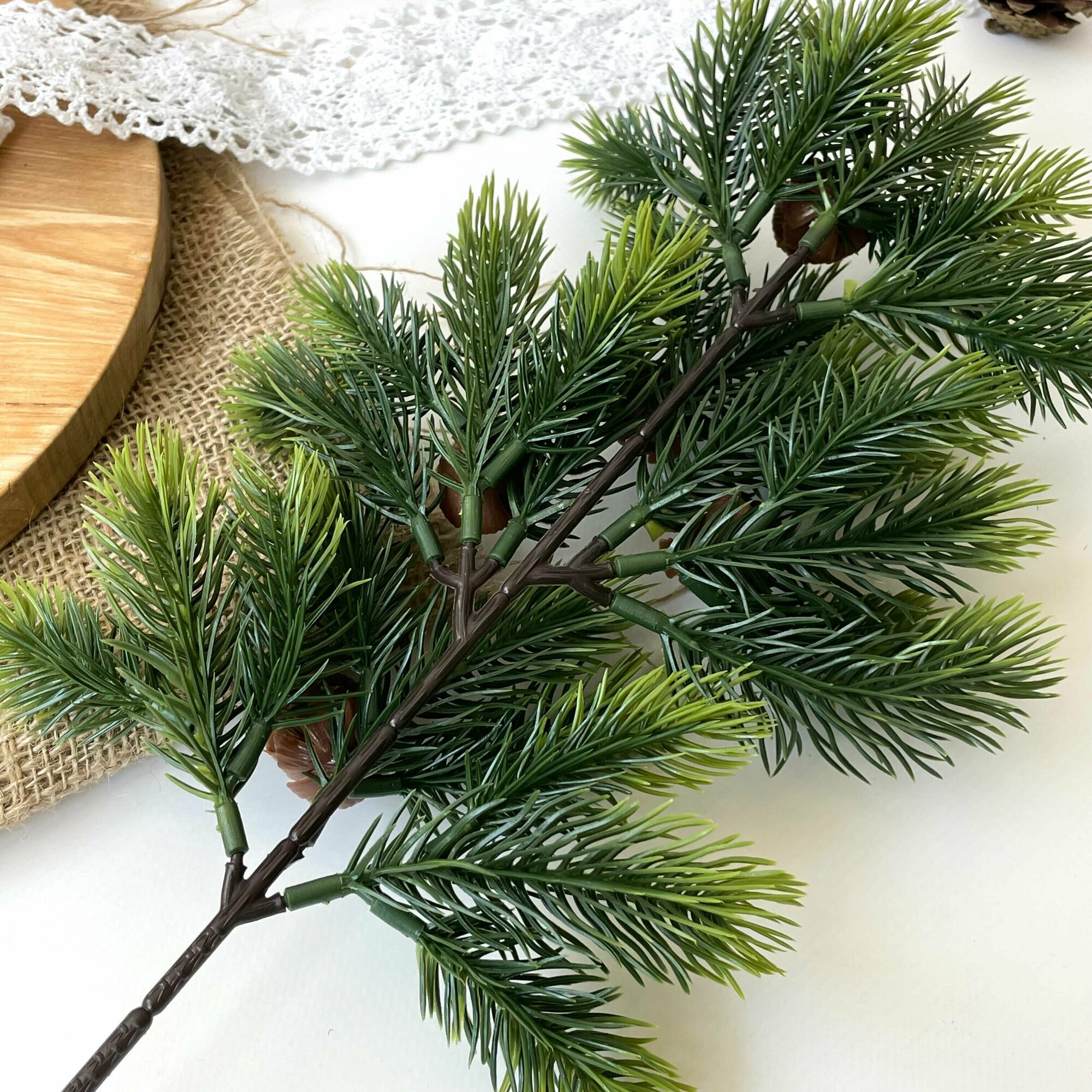 Еловые ветки для декора, искусственные, новогодний декор, 41 см, лапки 6 см, 3 ветки.