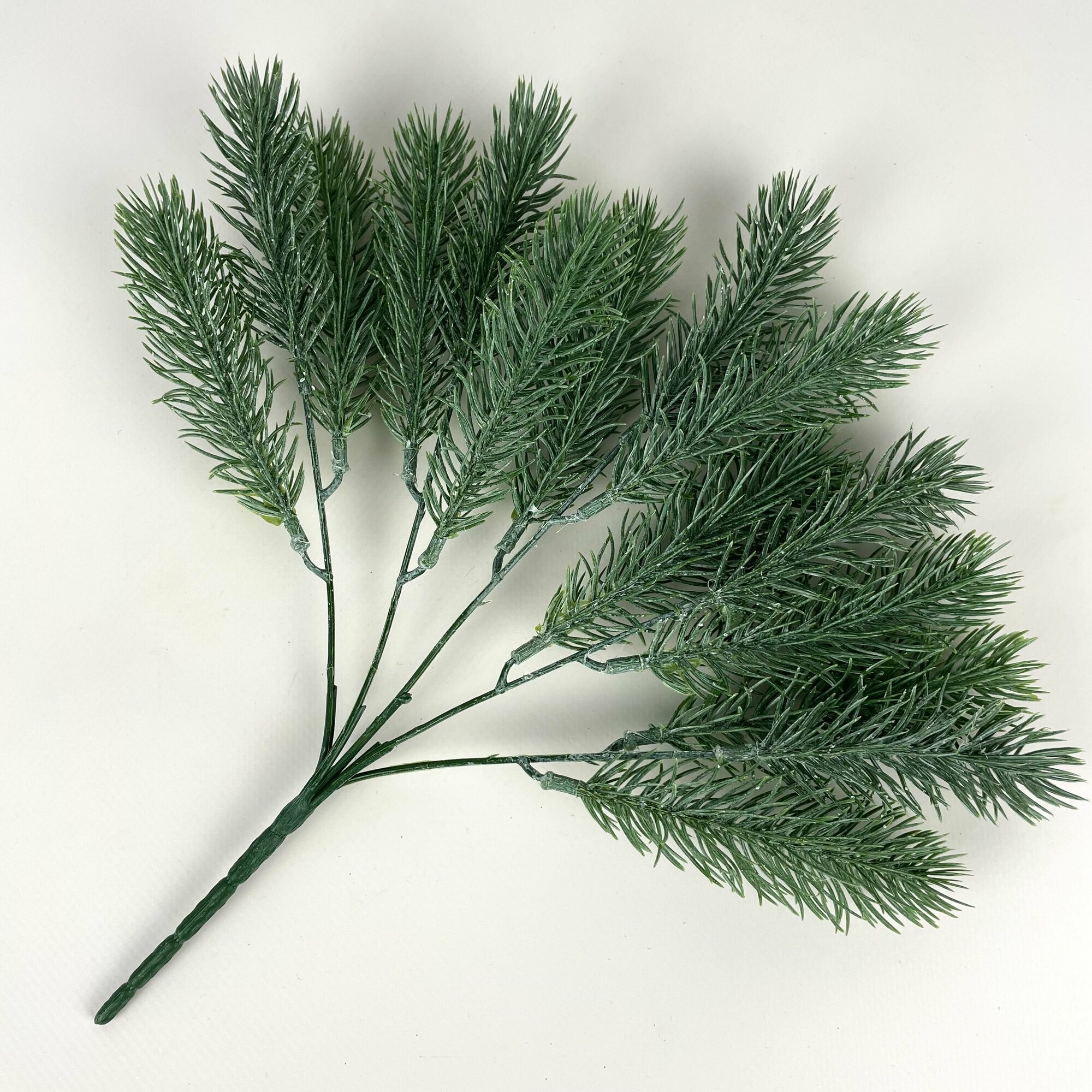 Еловая ветка искусственная, декор зимний, рождественский, 5 лапок на ветке 30 см, набор 5 веток. Зеленые.