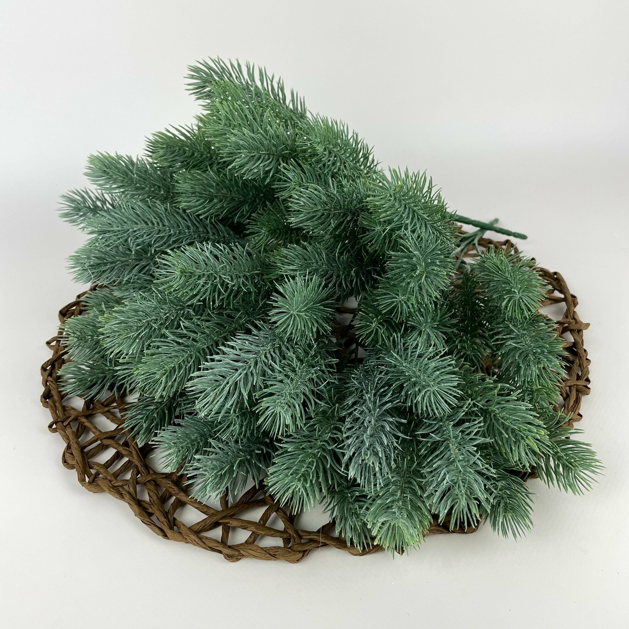 Купить Еловая ветка в патине, эффект "Голубой Ели", декор зимний, рождественский, 15 лапок, 30 см, набор 5 ветки