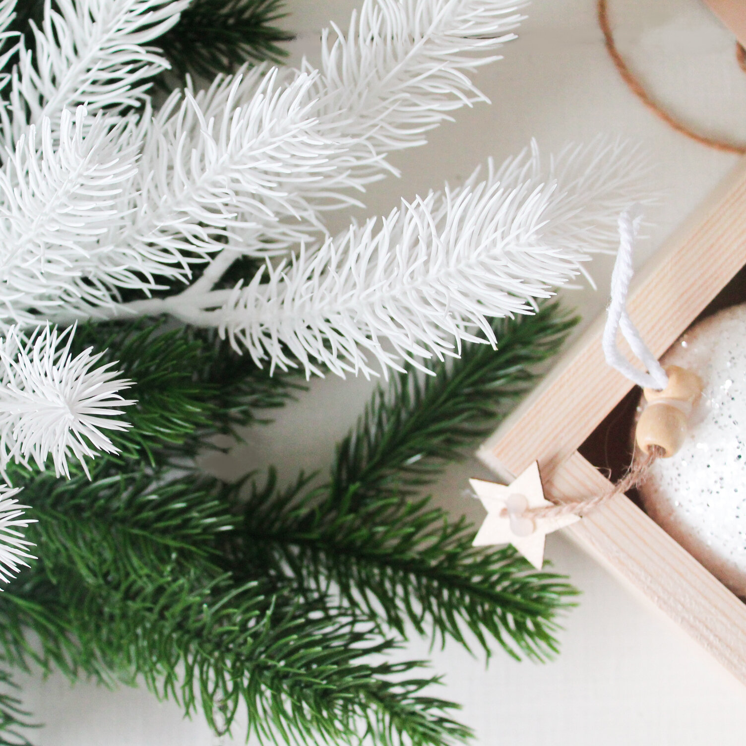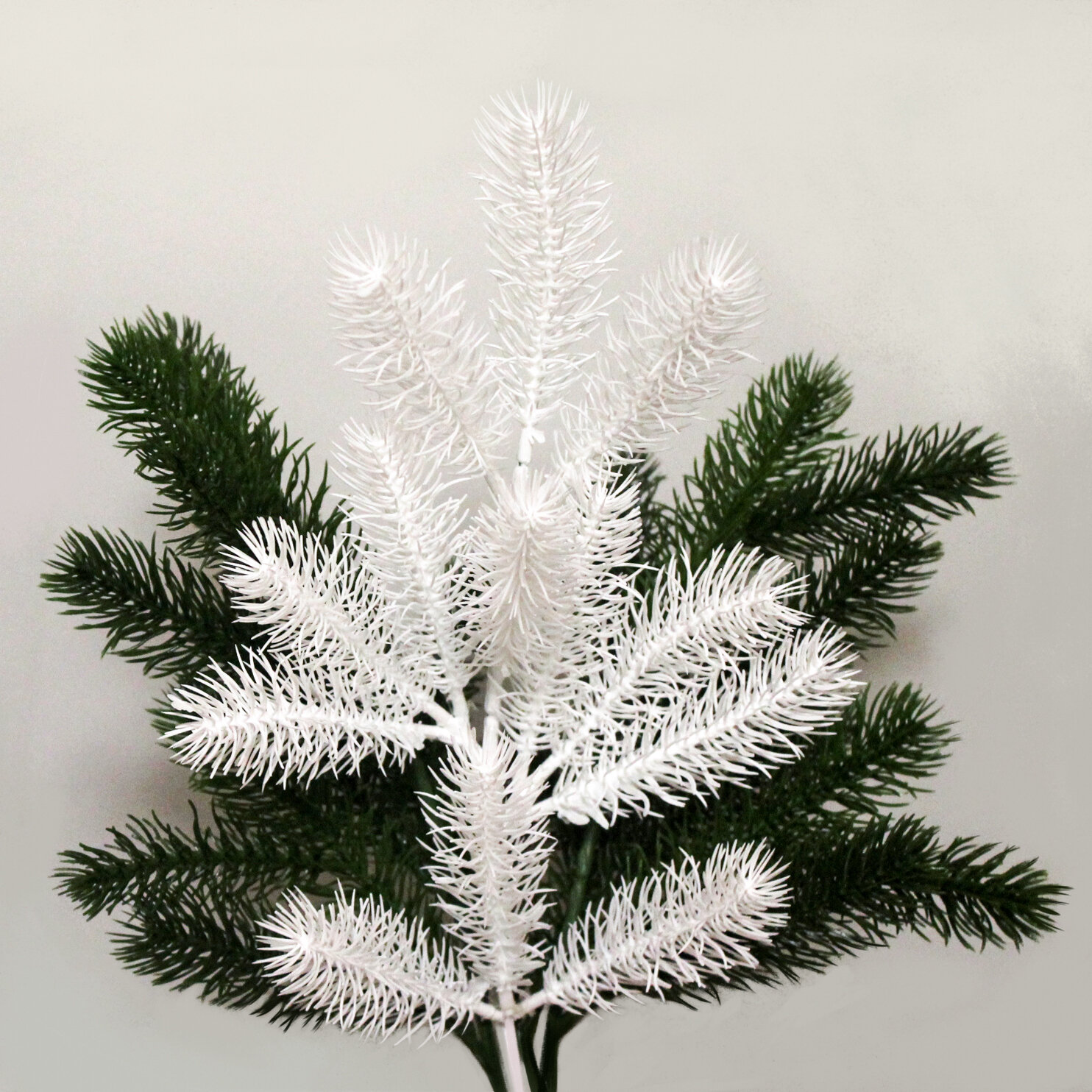 Купить Еловая ветка искусственная, набор 3 ветки, 1 белая и 2 зеленые, декор зимний, рождественский, 42 см
