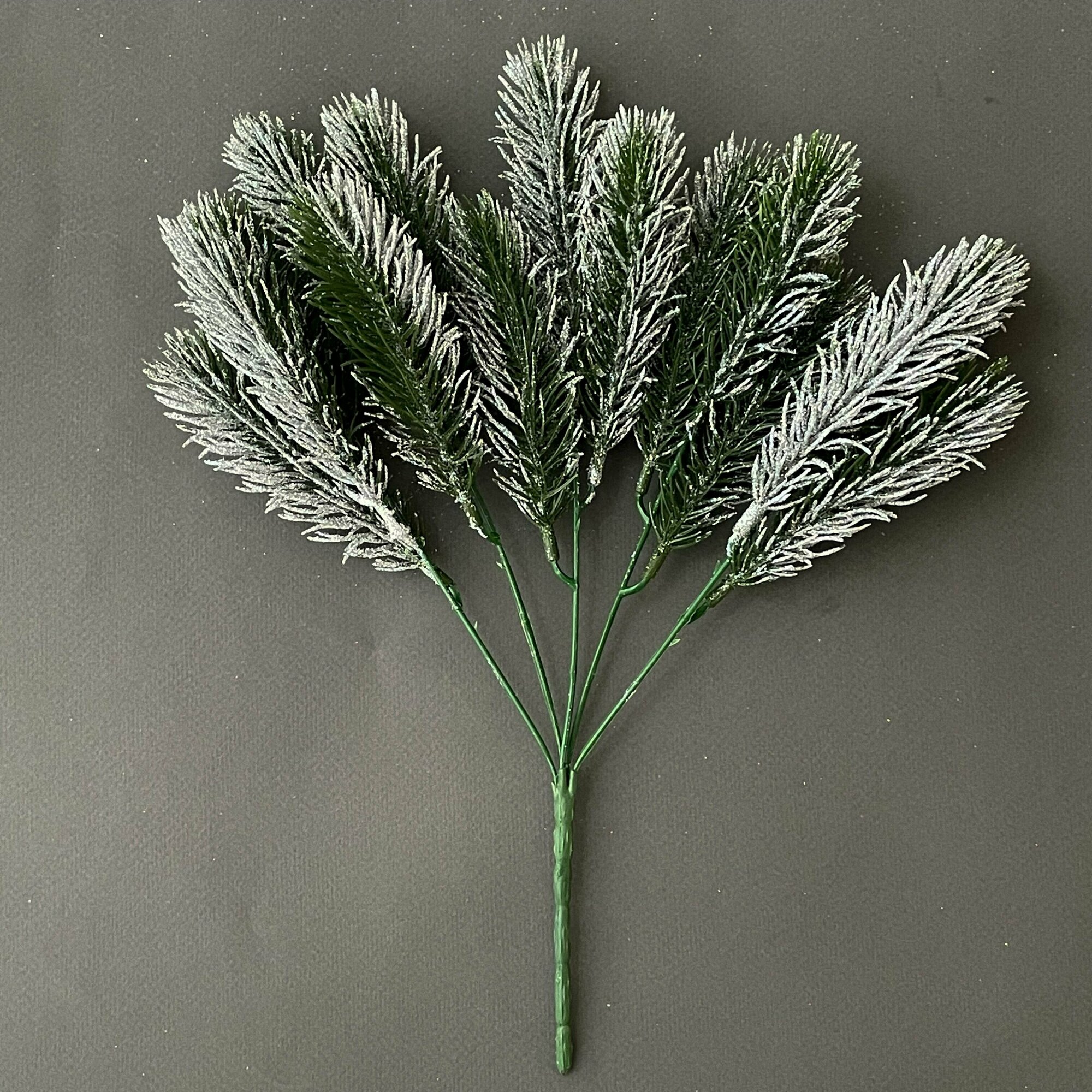 Еловая ветка в патине, эффект "Голубой Ели", декор зимний, рождественский, 15 лапок, 30 см, набор 5 ветки