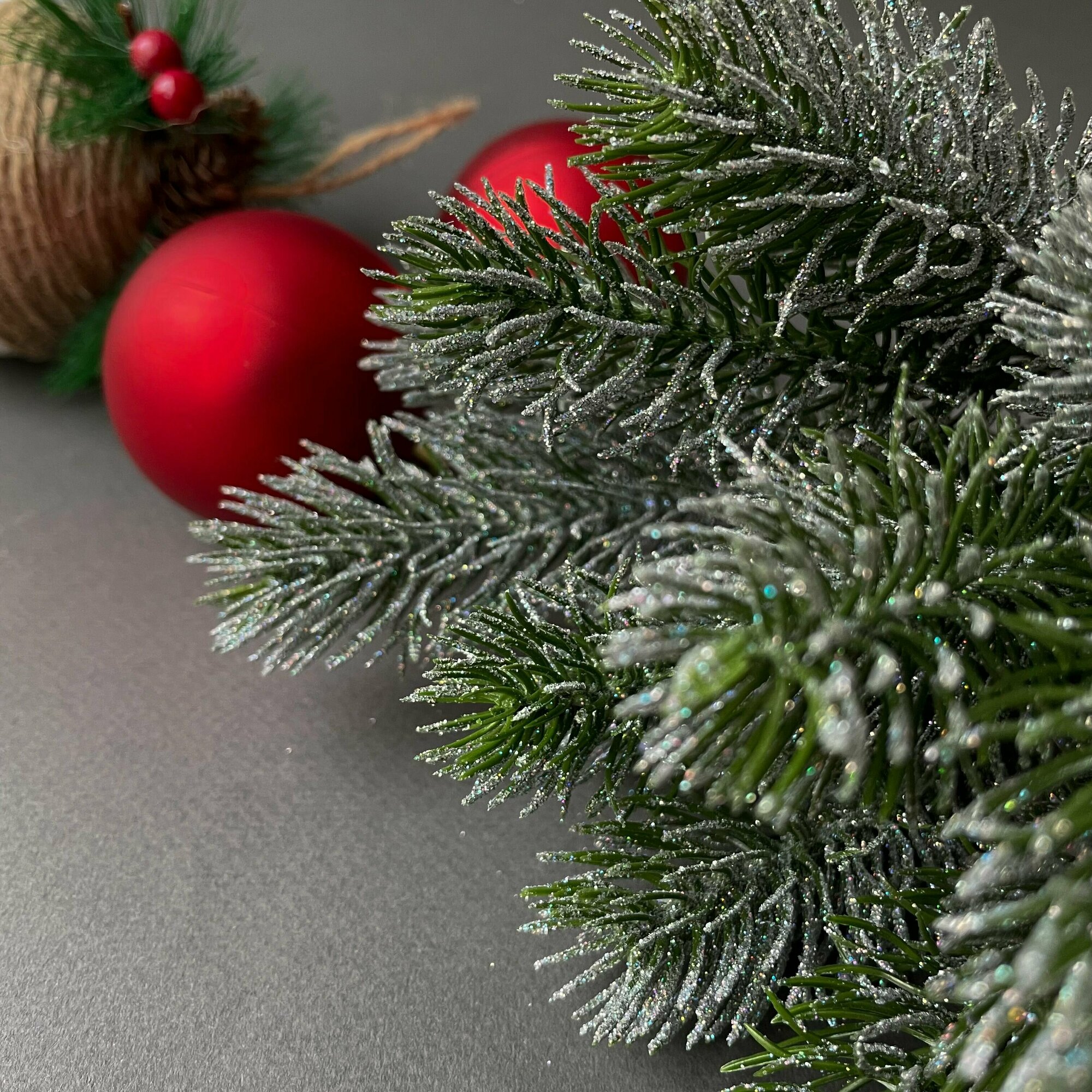Еловая ветка искусственная, декор зимний, рождественский, набор 2 ветки, 50 см