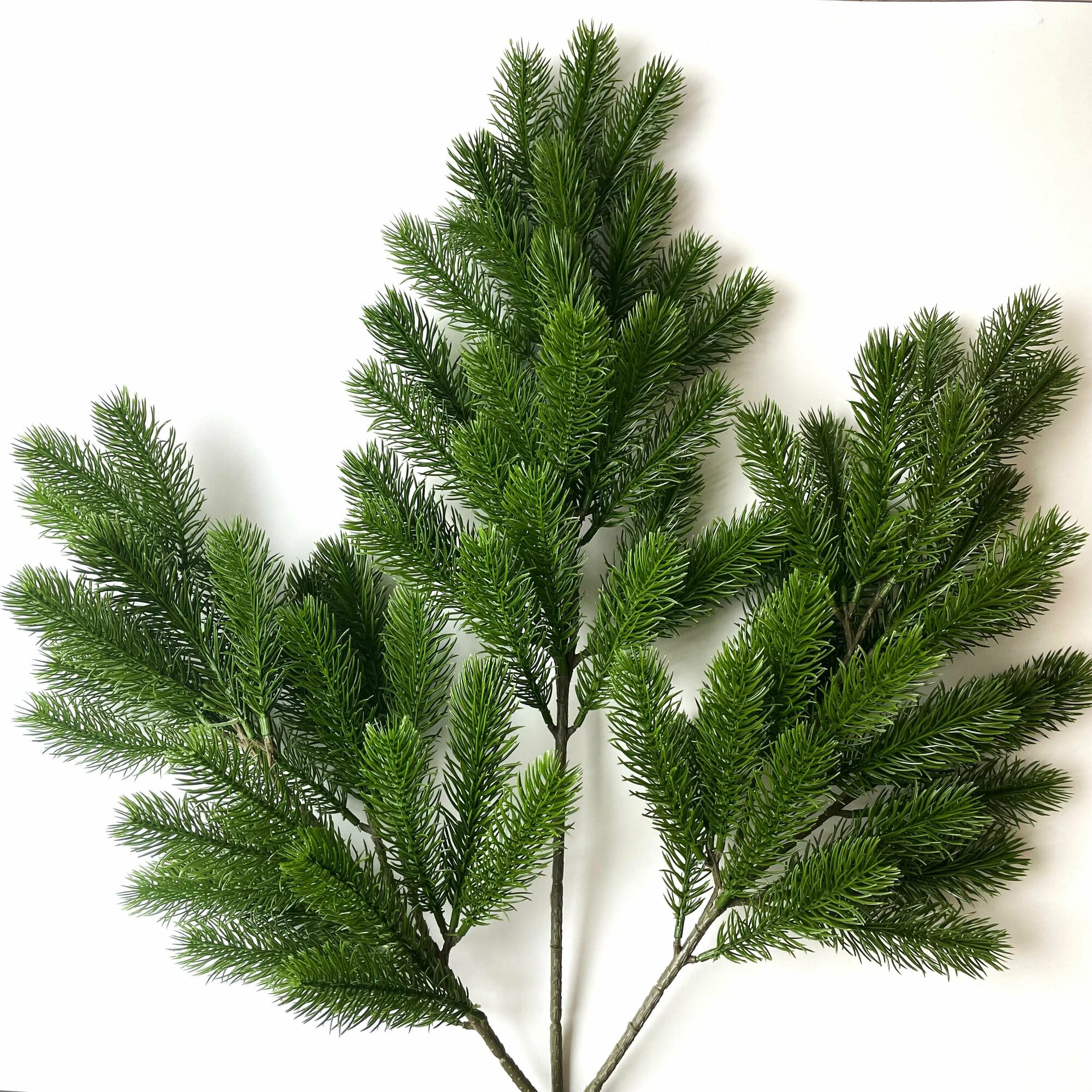Сосна, хвойная ветка искусственная, декор зимний, рождественский, набор 3 ветки, 36 см