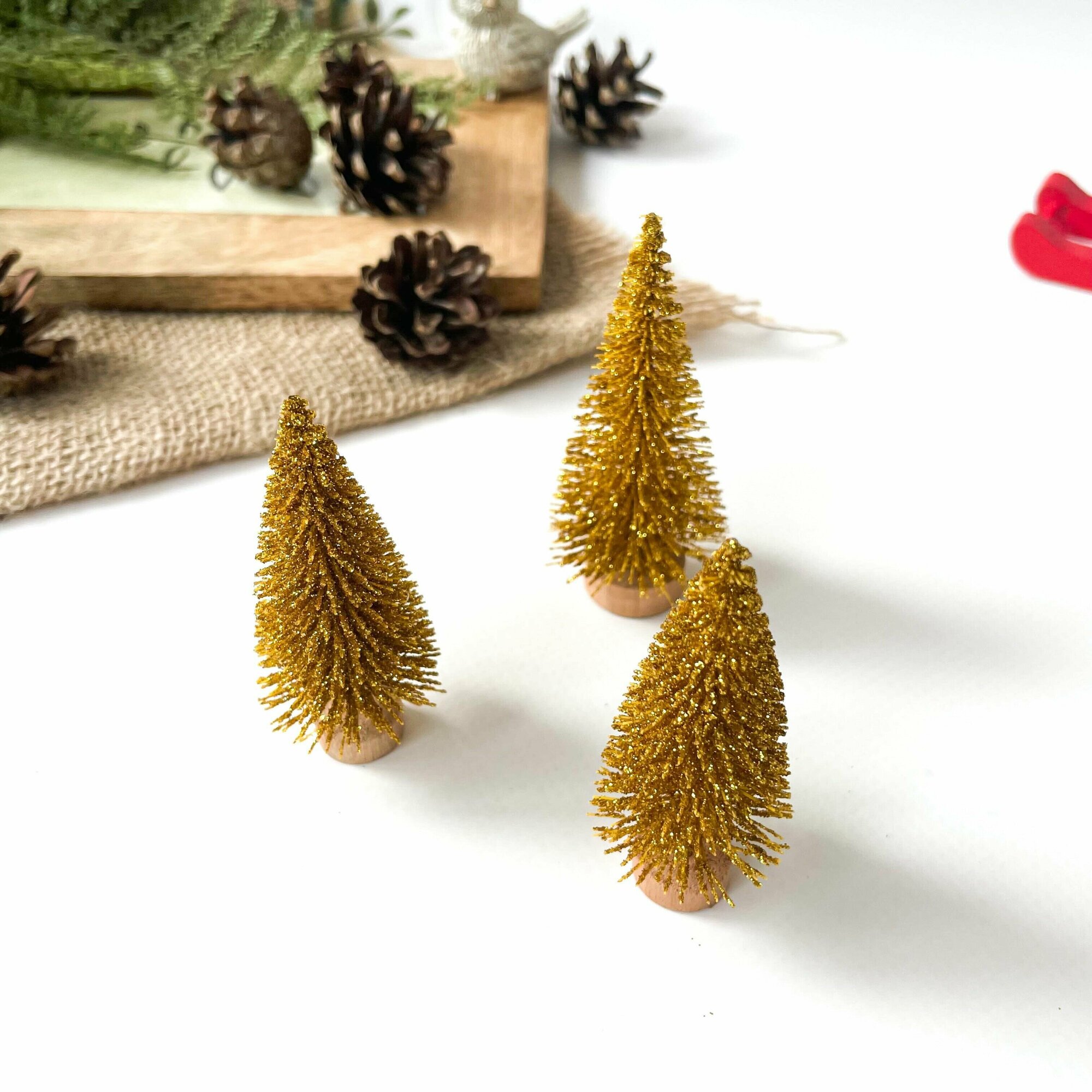 Купить Елка искусственная, Елочка мини, декор новогодний, рождественский, золотистый 7 см, набор 3 штуки