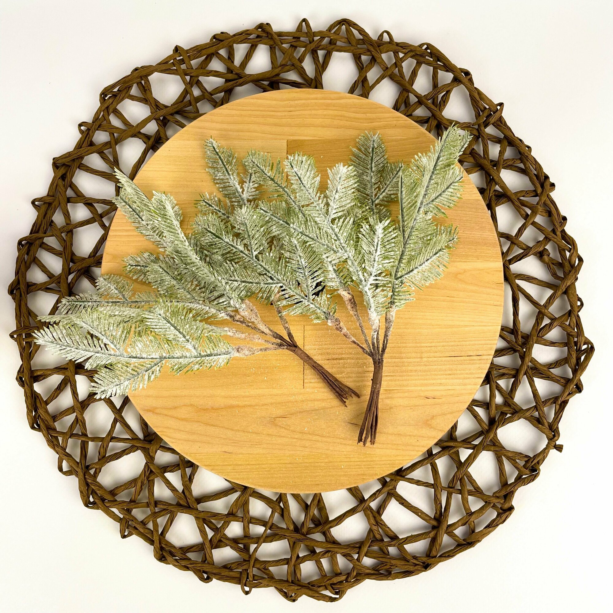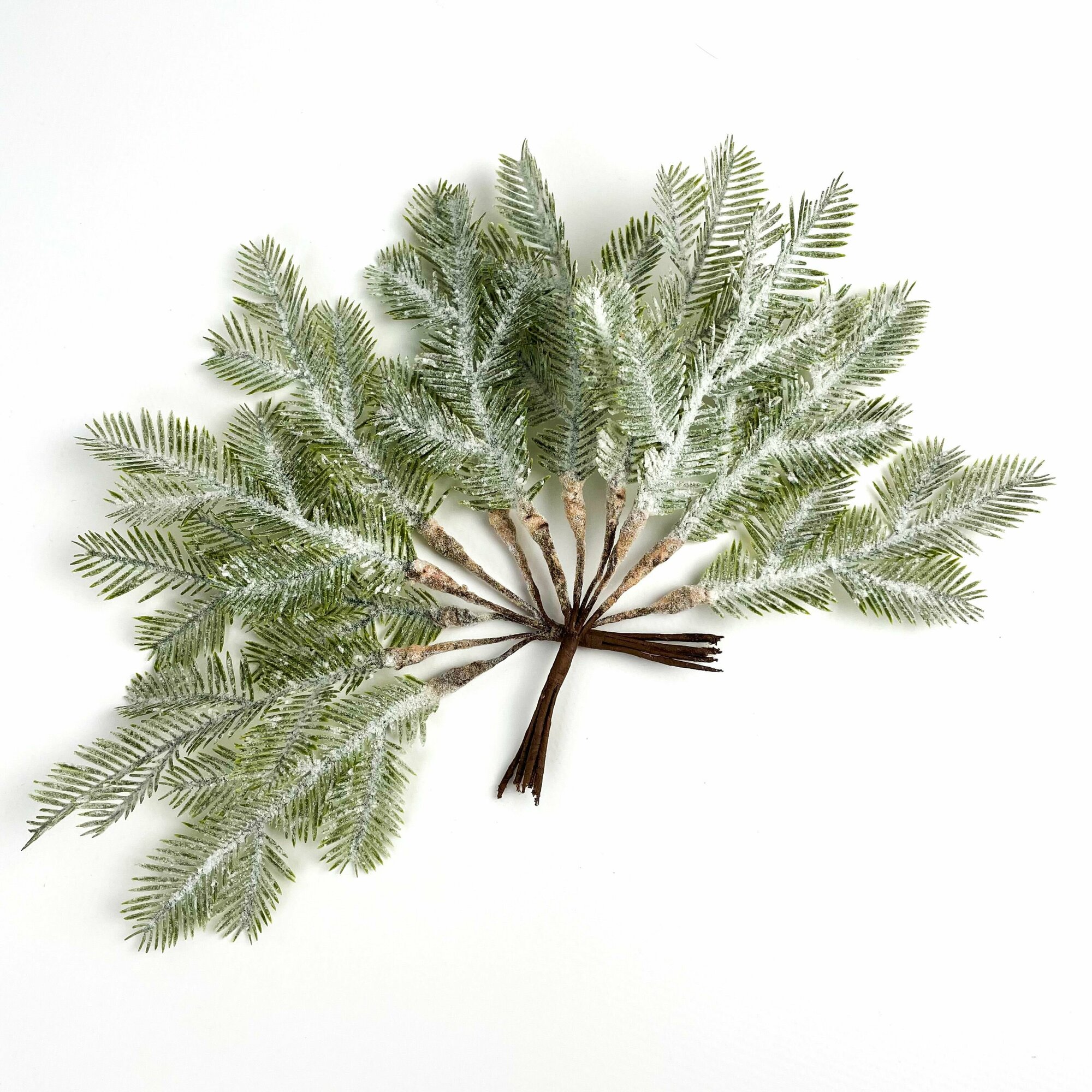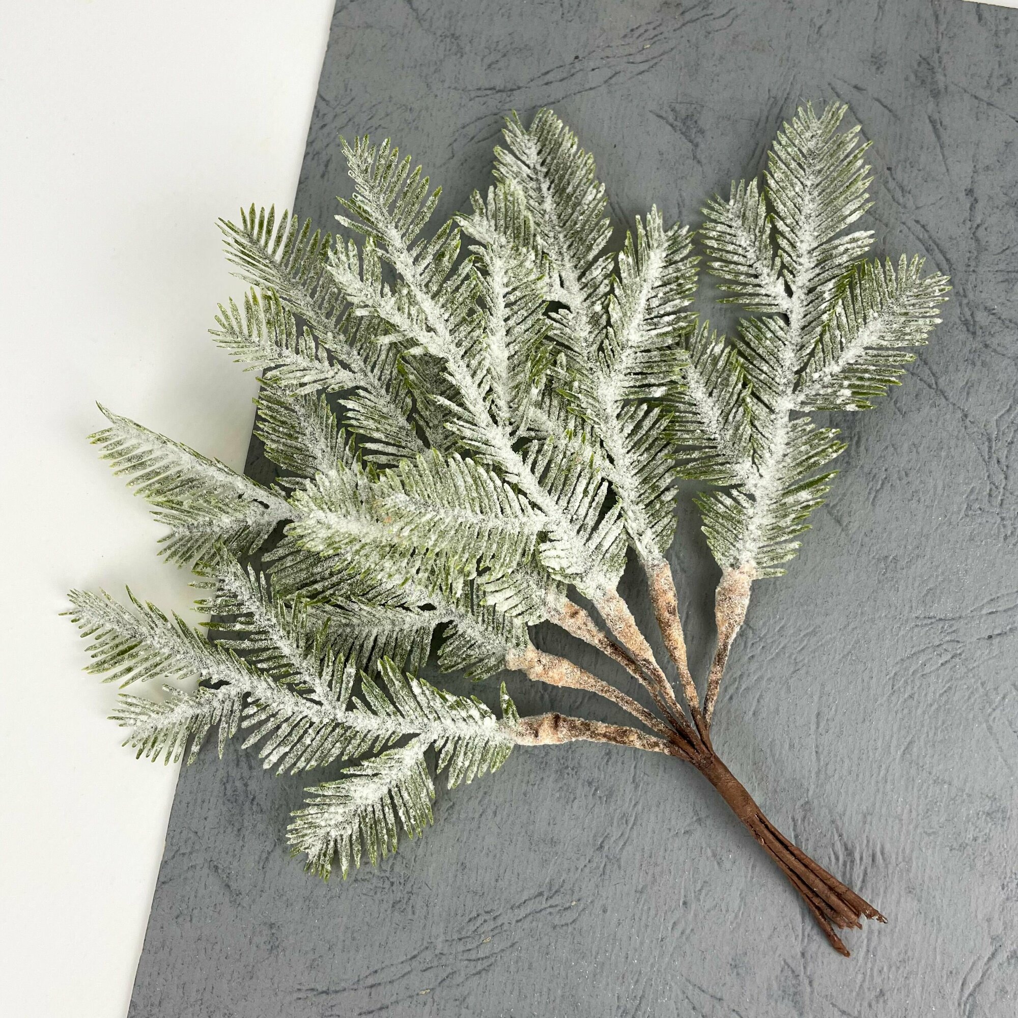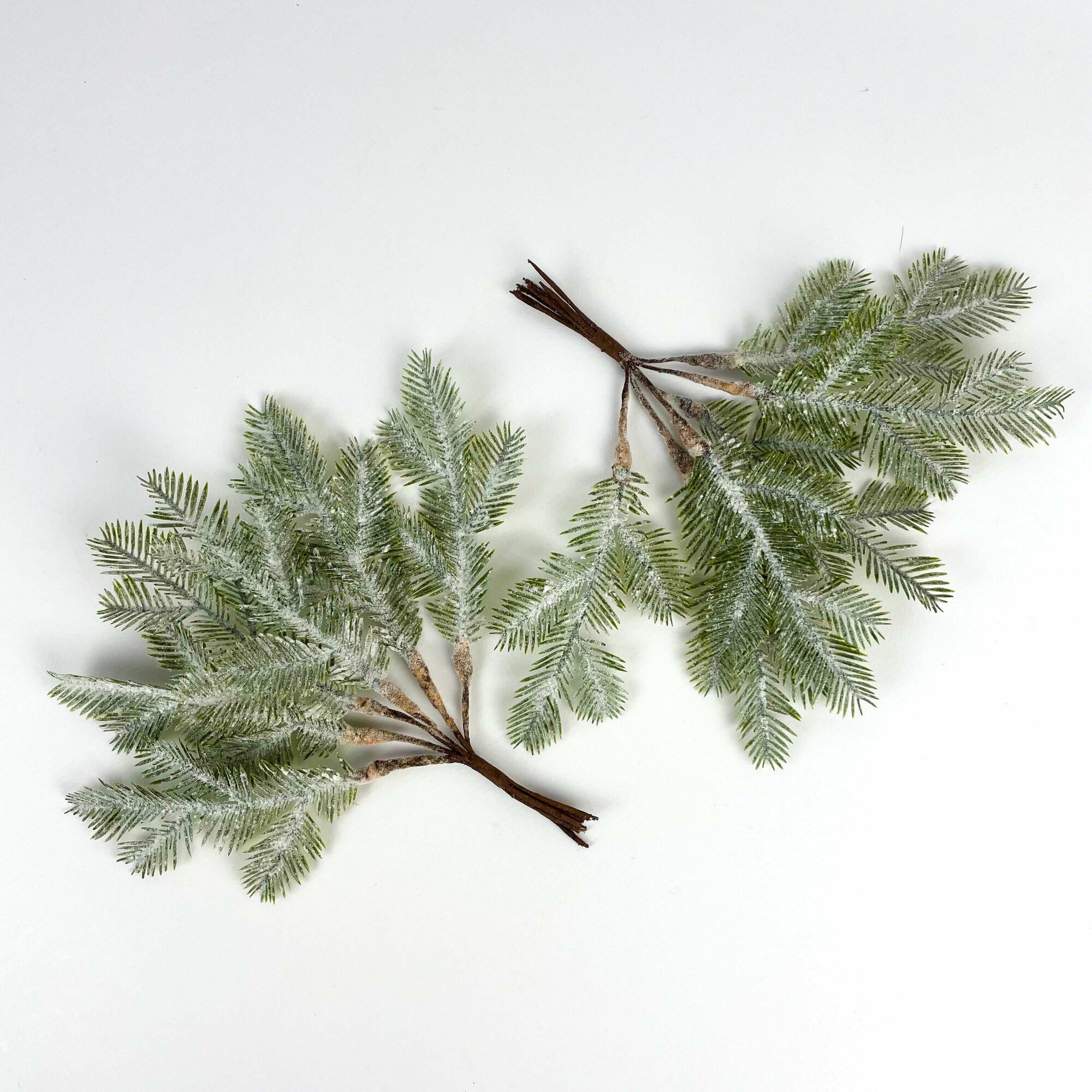 Купить Еловая ветка мини, заснеженная, букет 20 см, набор 2 шт.