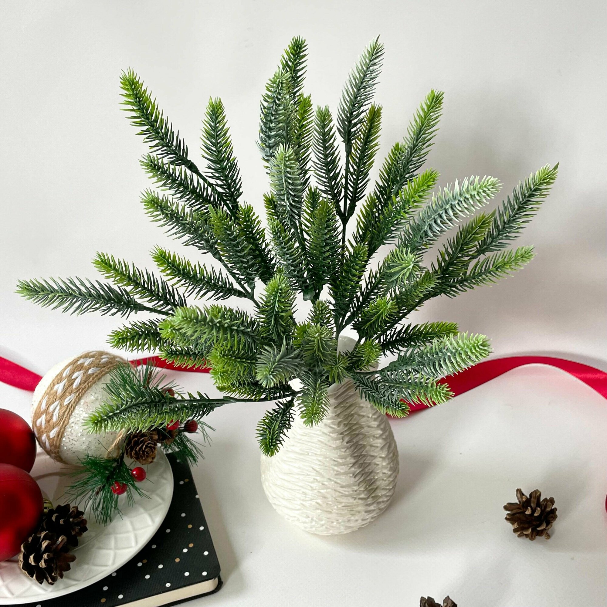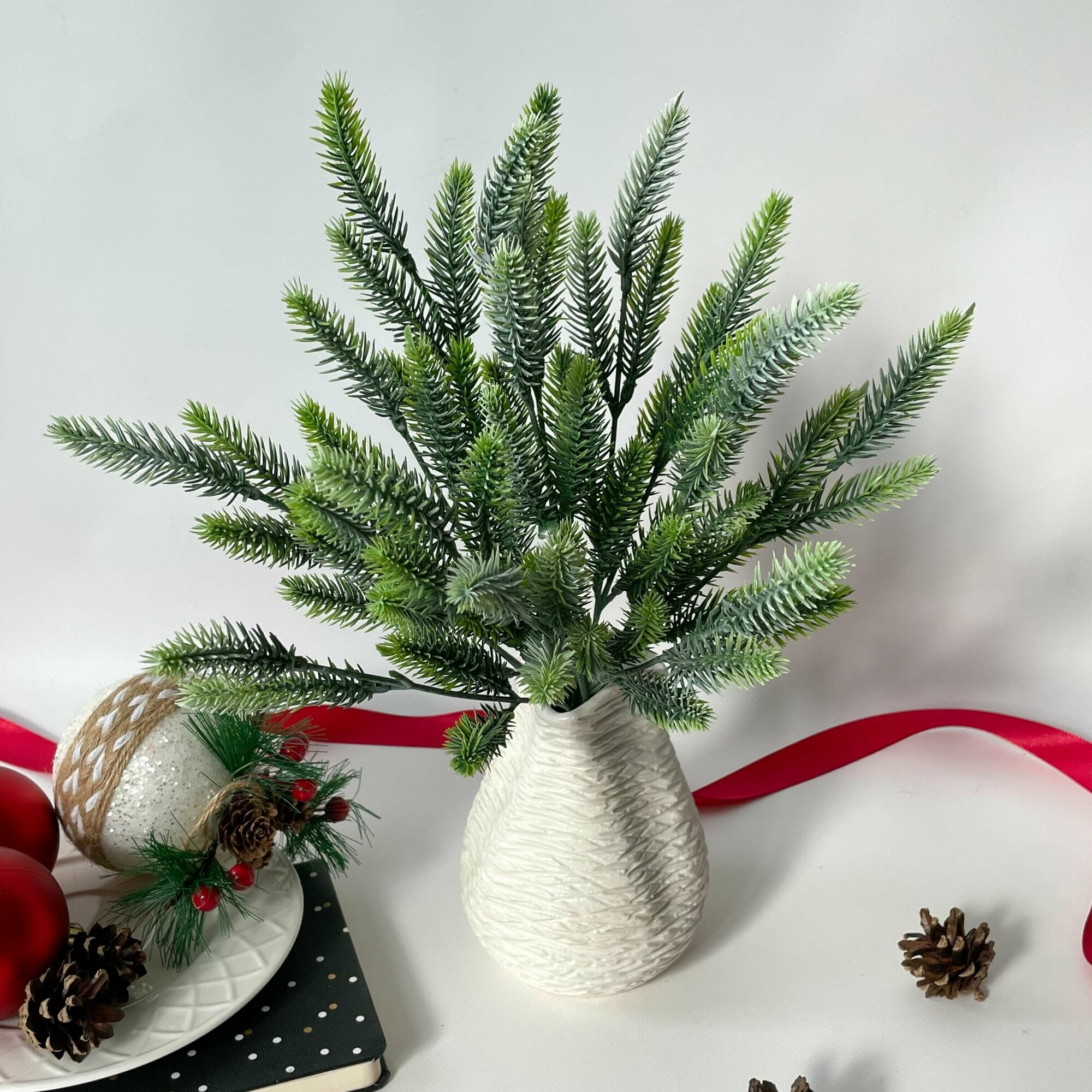 Бонсай, хвойная/еловая ветка искусственная, декор зимний, рождественский, набор 3 ветки, 32 см