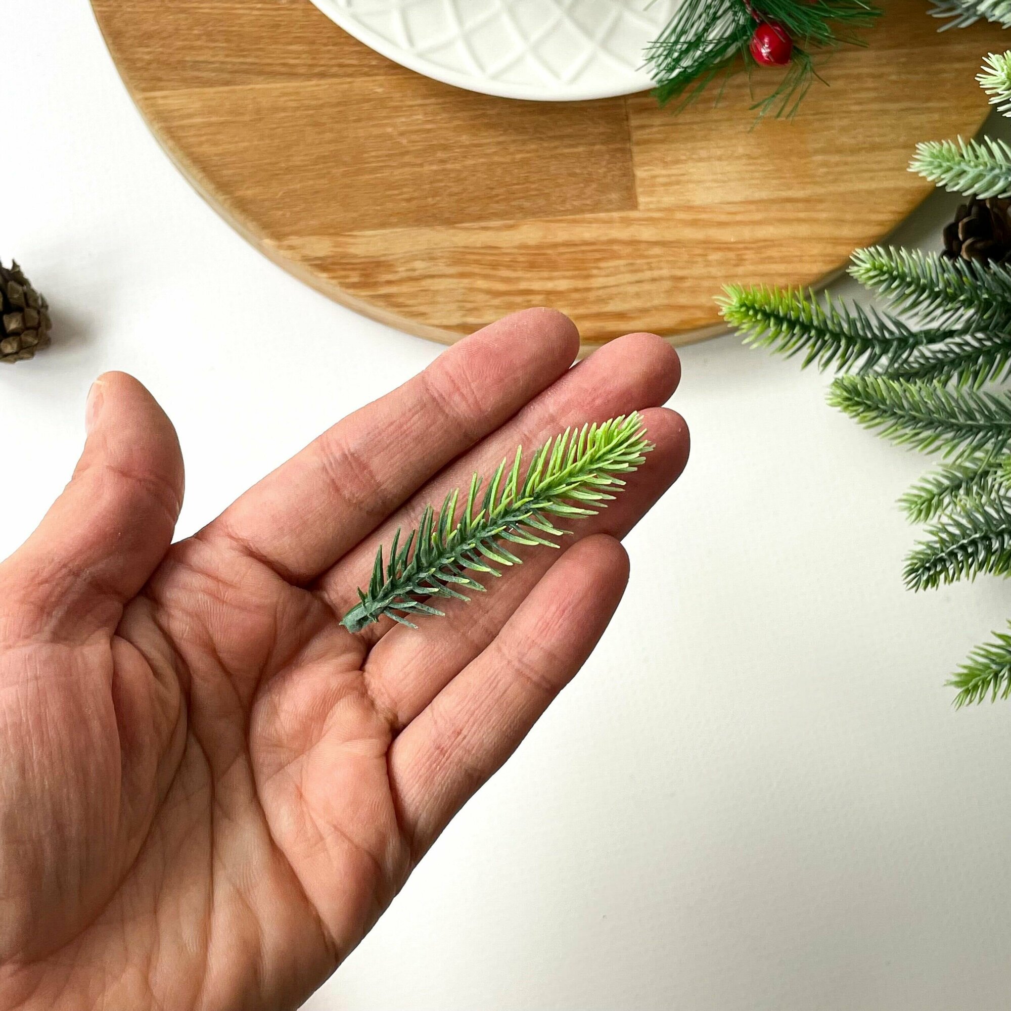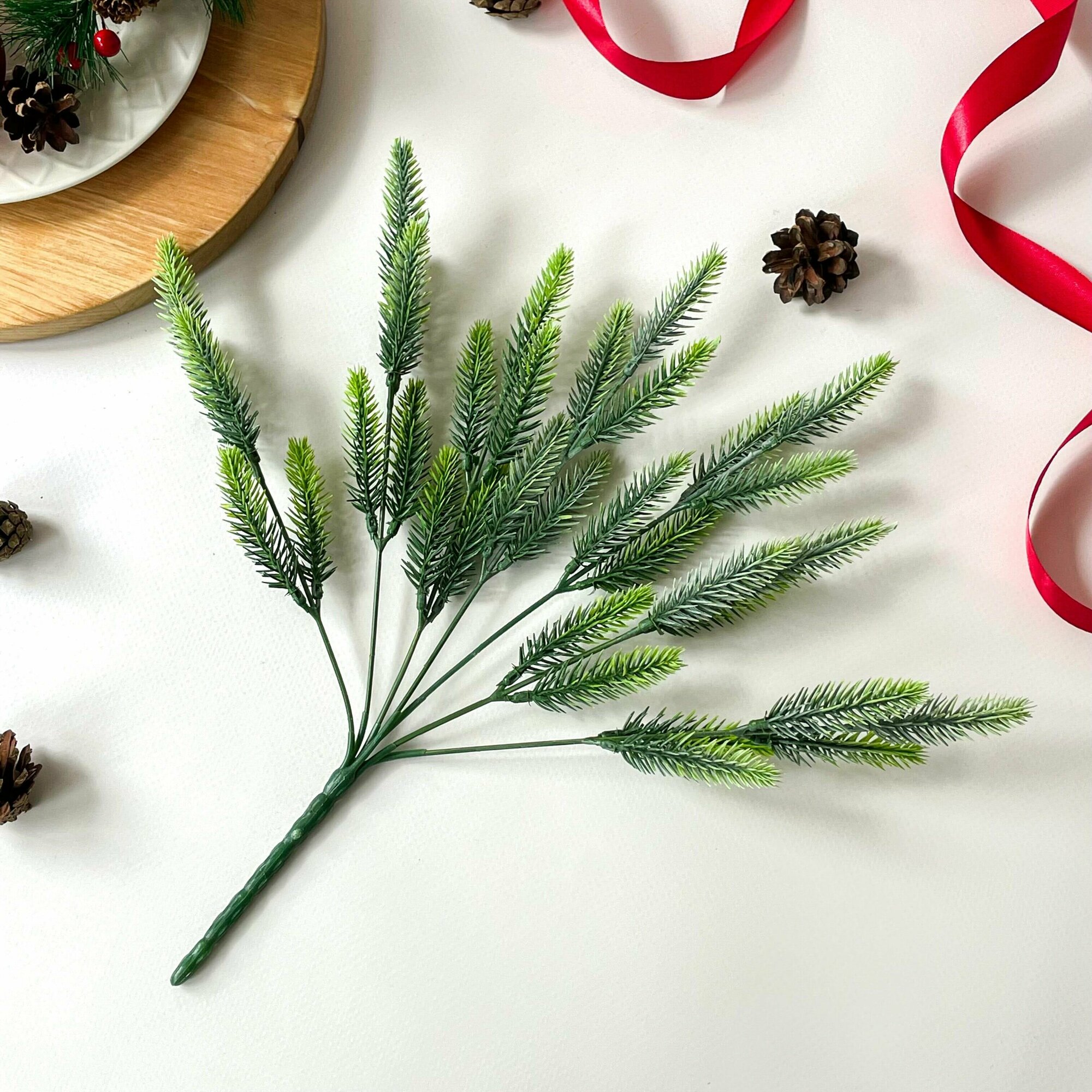 Еловые ветки искусственные, 25 см, Лапки 7,5 см, 7 лапок на ветке, набор 5 шт