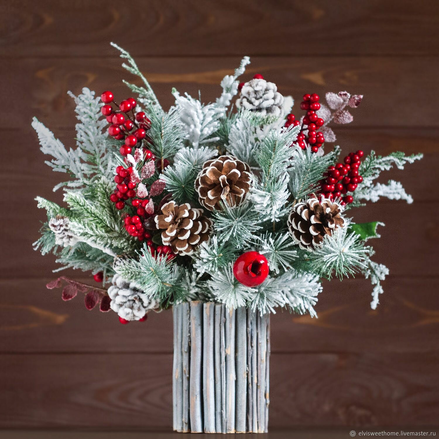 Бонсай, хвойная/еловая ветка искусственная, декор зимний, рождественский, набор 3 ветки, 32 см