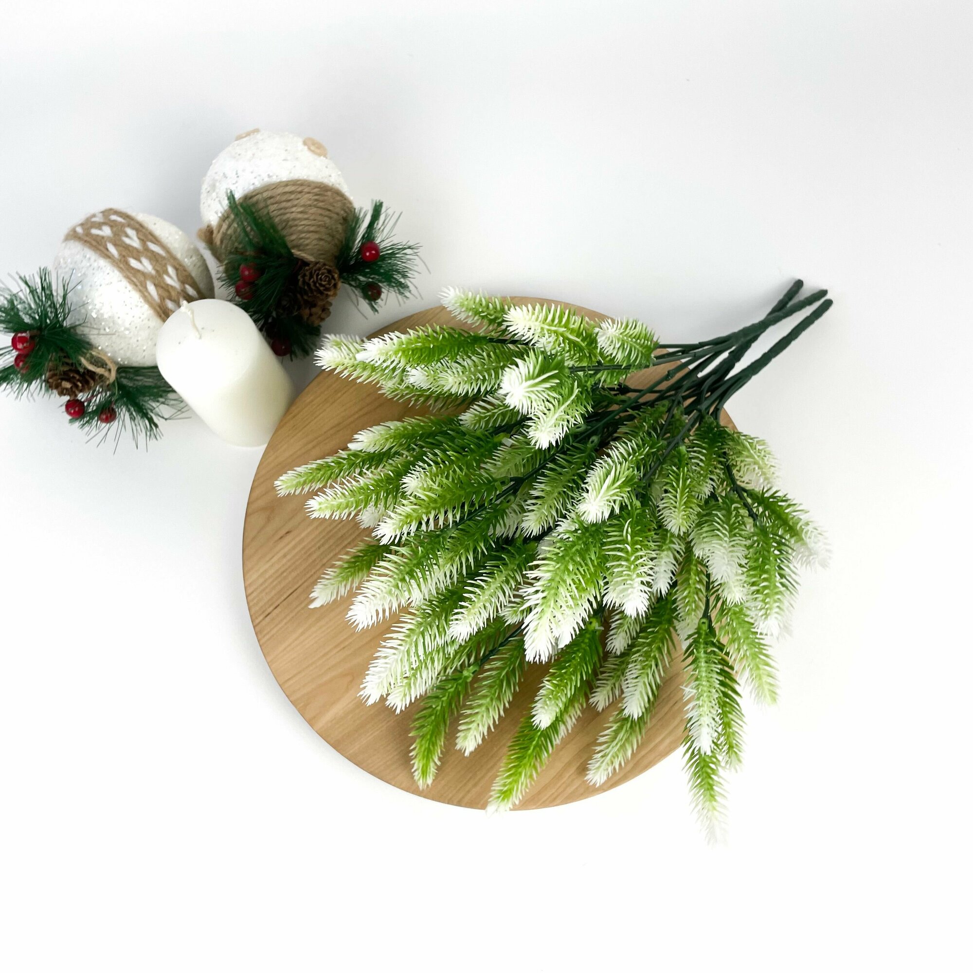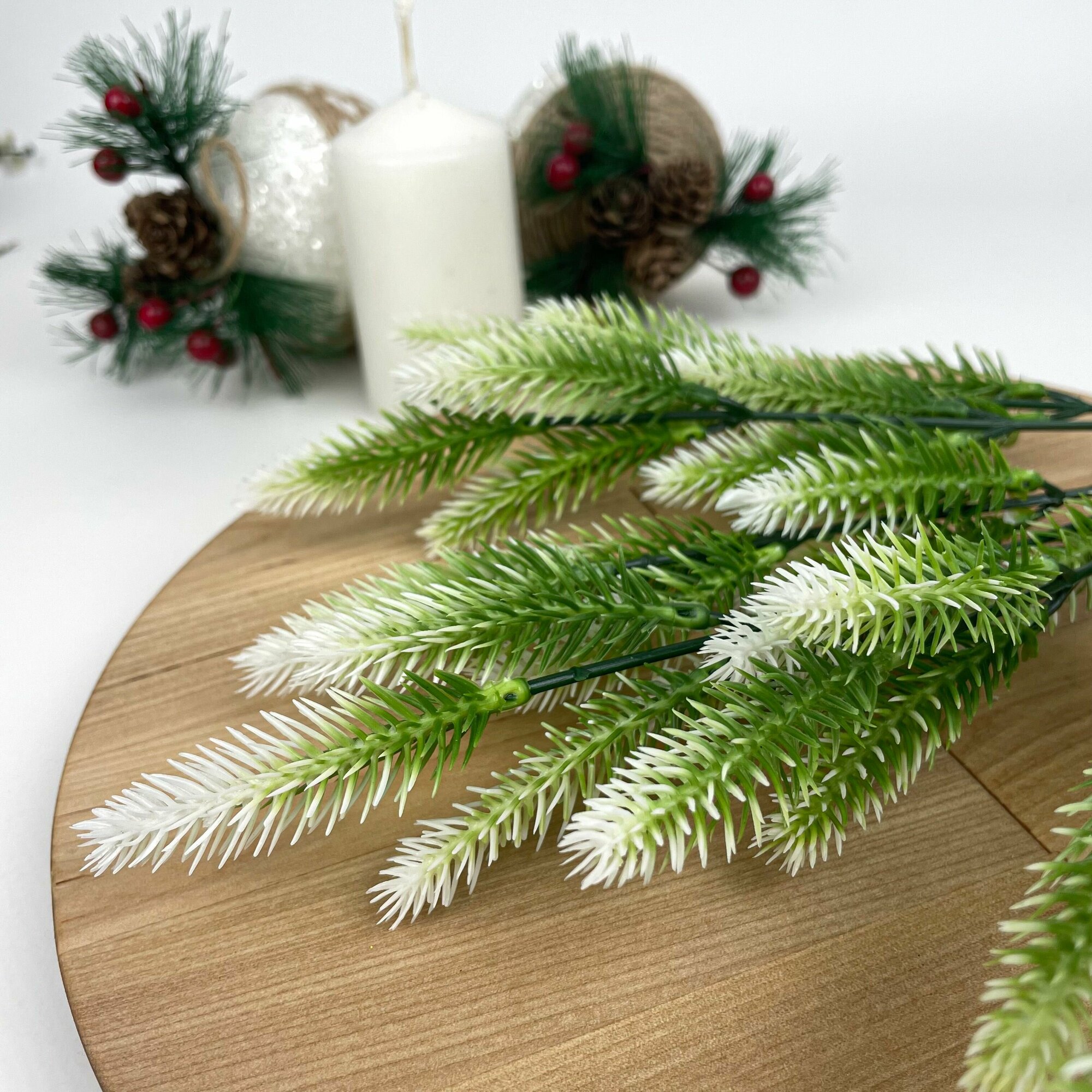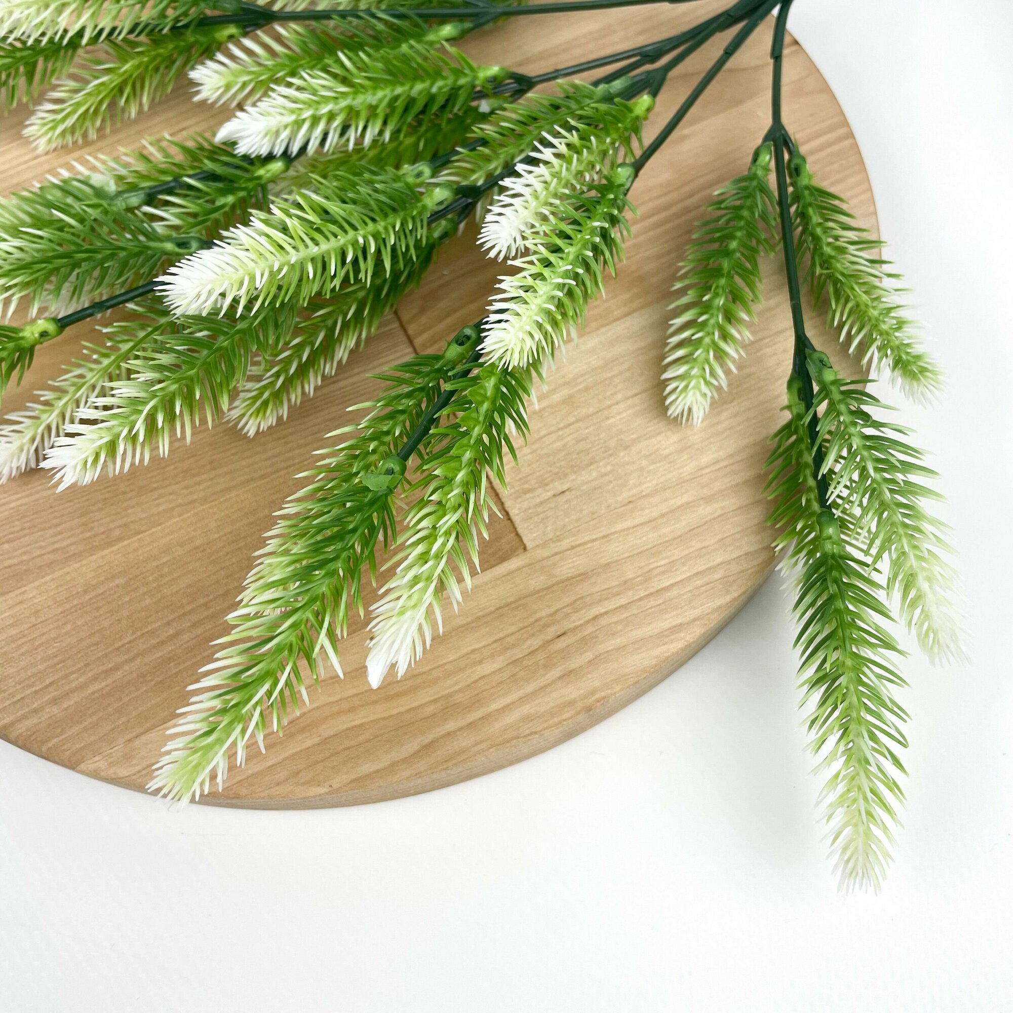 Купить Еловая ветка искусственная, бело-зеленая, Мини лапки 5,5-6 см, 30-35 лапок, 30 см, набор 3 ветки