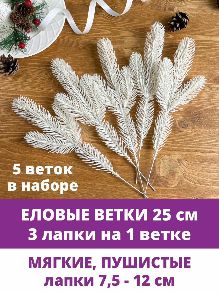Купить Еловая ветка искусственная, Бело-кремовая, новогодний декор, рождественский, размер лапок 7,5-12 см, 5 штук