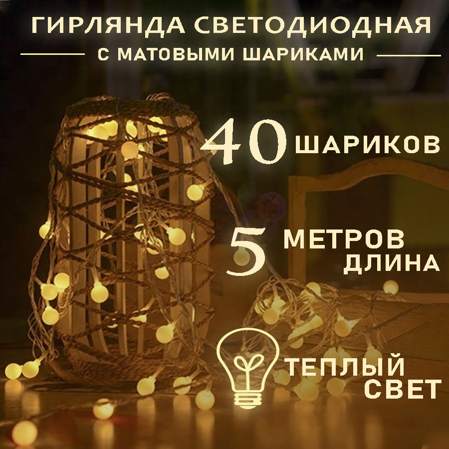 Гирлянда с матовыми шариками от батареек 5м 50 LED интересное: