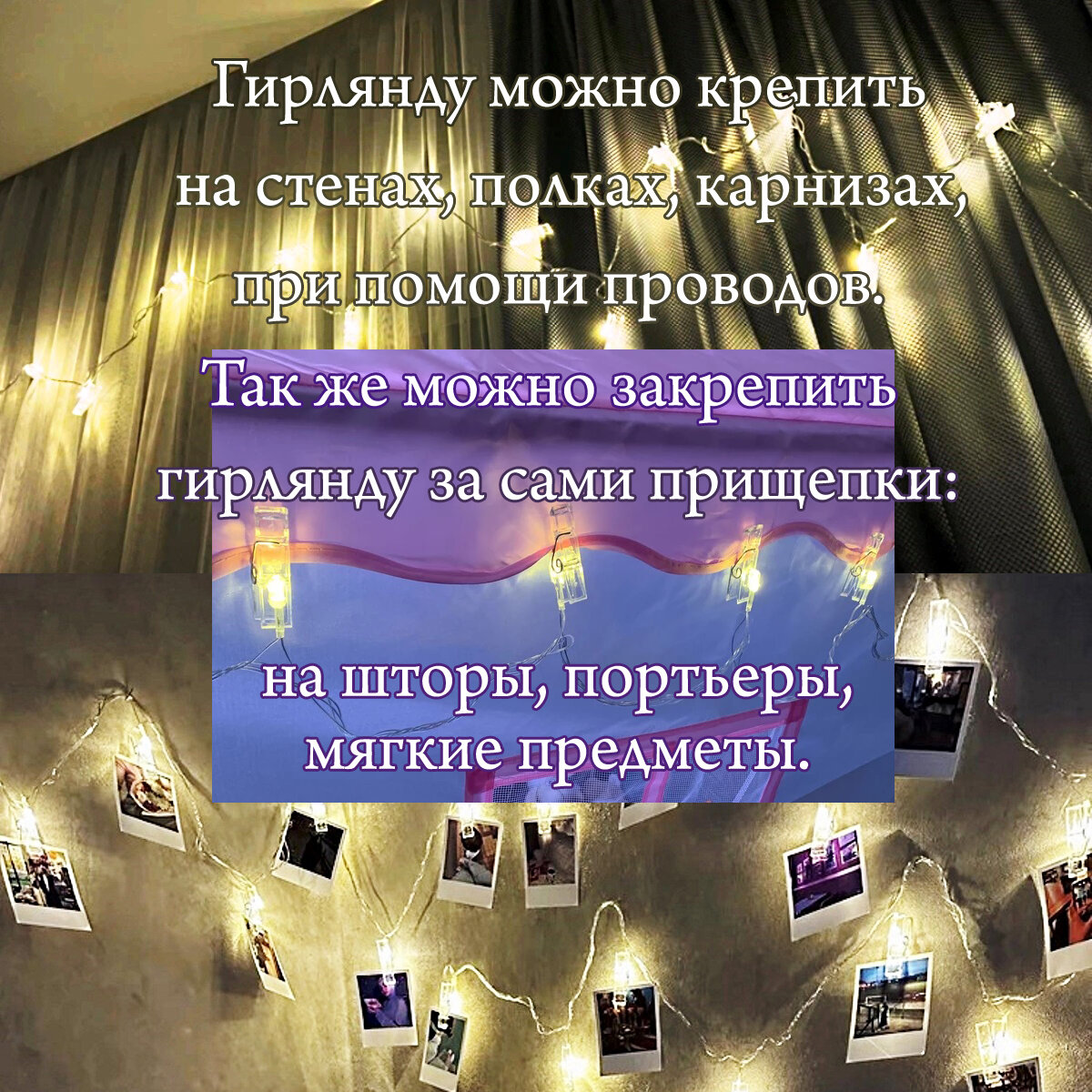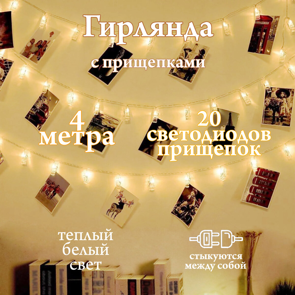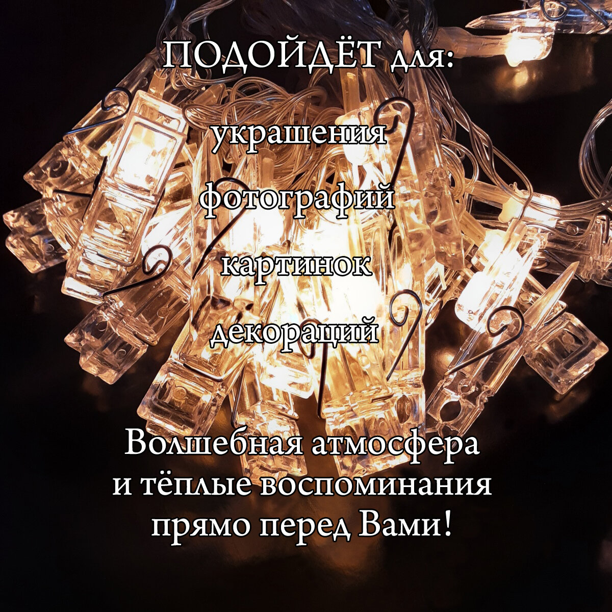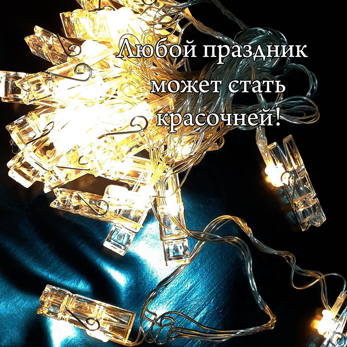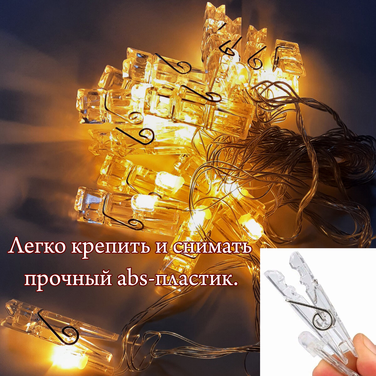 Купить Электрогирлянда 20 Теплых Белых прищепок для фотографий 220В