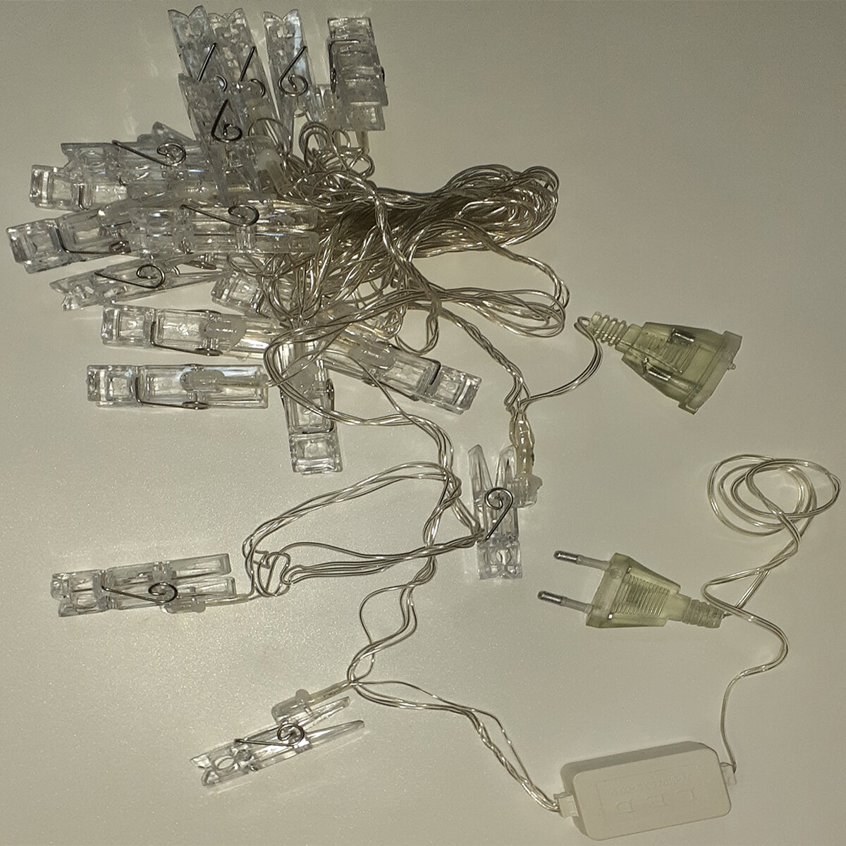 | Комплектация | электрогирлянда на светодиодах с прищепками, прозрачная коробка из пластика |