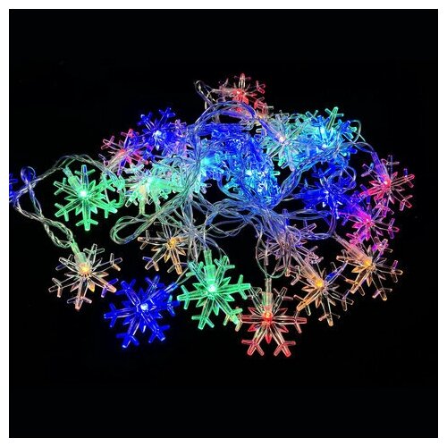 Электрогирлянда комнатная Золотая сказка "Снежинки", 3 м, 30 LED, мультицветная, 220 V