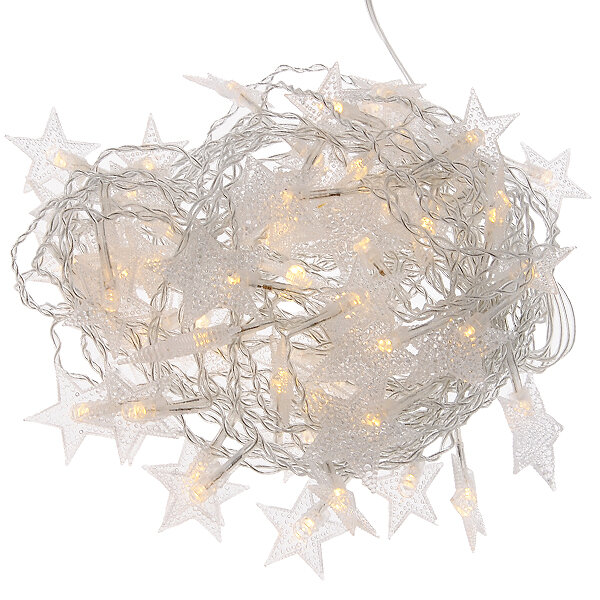 Гирлянда "Нить" 4 м с насадками "Звёздочка", IP20, прозрачная нить, 20 LED, свечение тёплое белое, 8 режимов, 220 В
