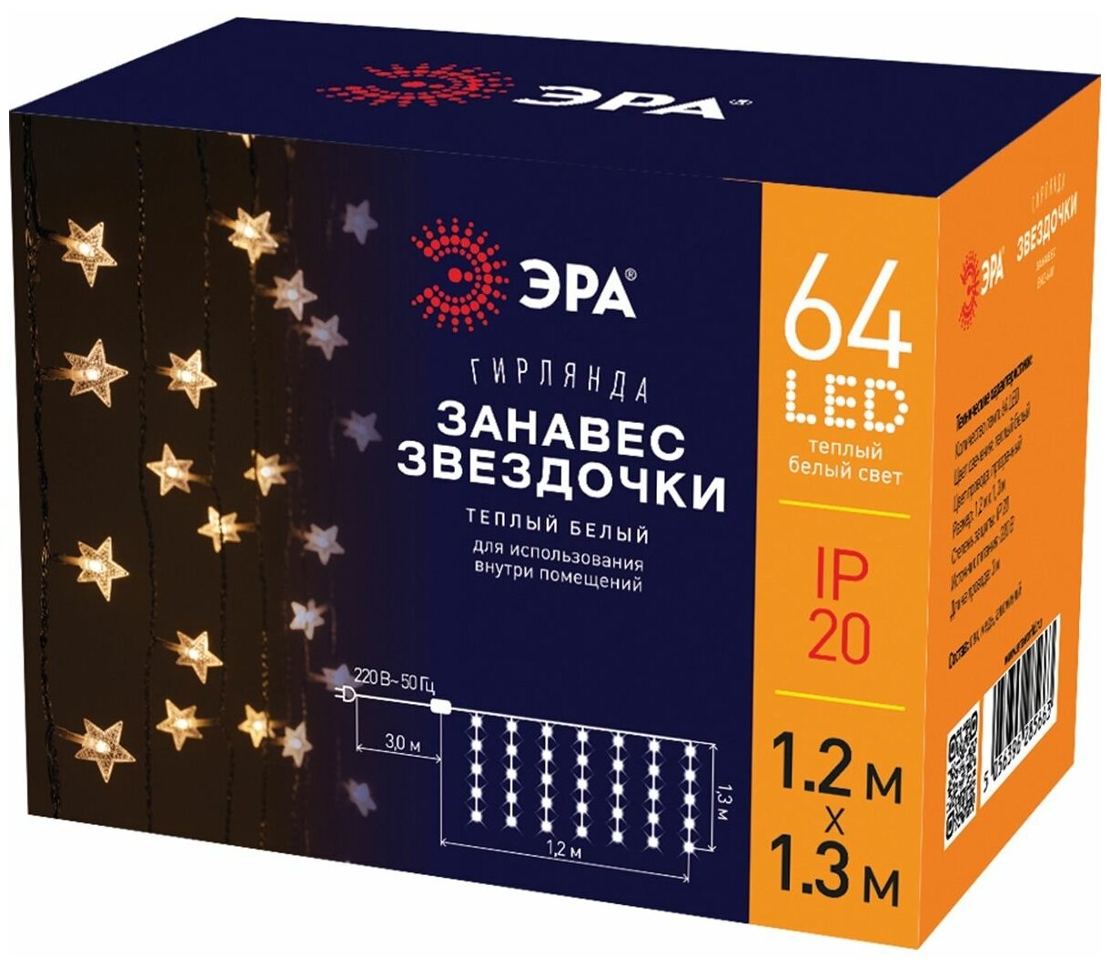 Гирлянда светодиодная занавес ЭРА ENIZ-64W электрогирлянда от сети 1,2 м х 1,3 м, 64 LED интересное: