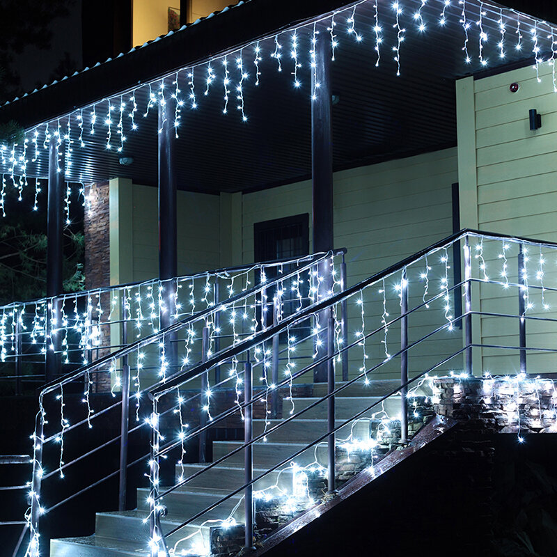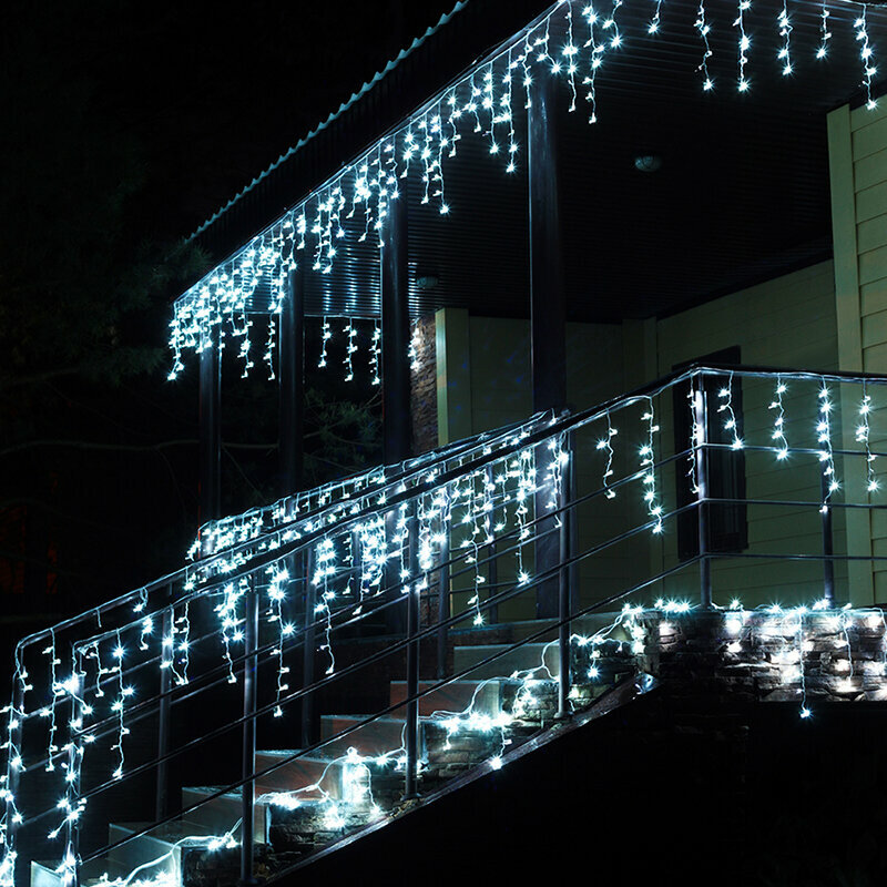 Купить Гирлянда уличная бахрома 6 метров белая на дом на улицу / электрогирлянда уличная бахрома 6 м для улицы на дом