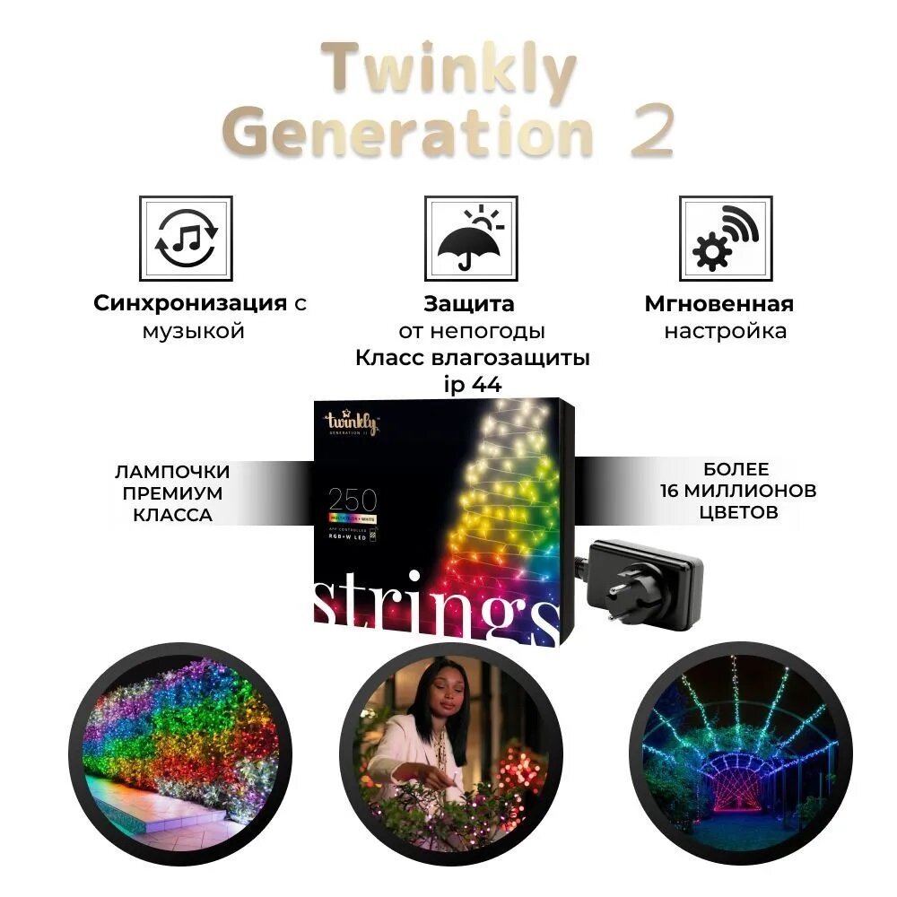 Гирлянда Twinkly Strings, 250 LED, RГБW, Wi-Fi