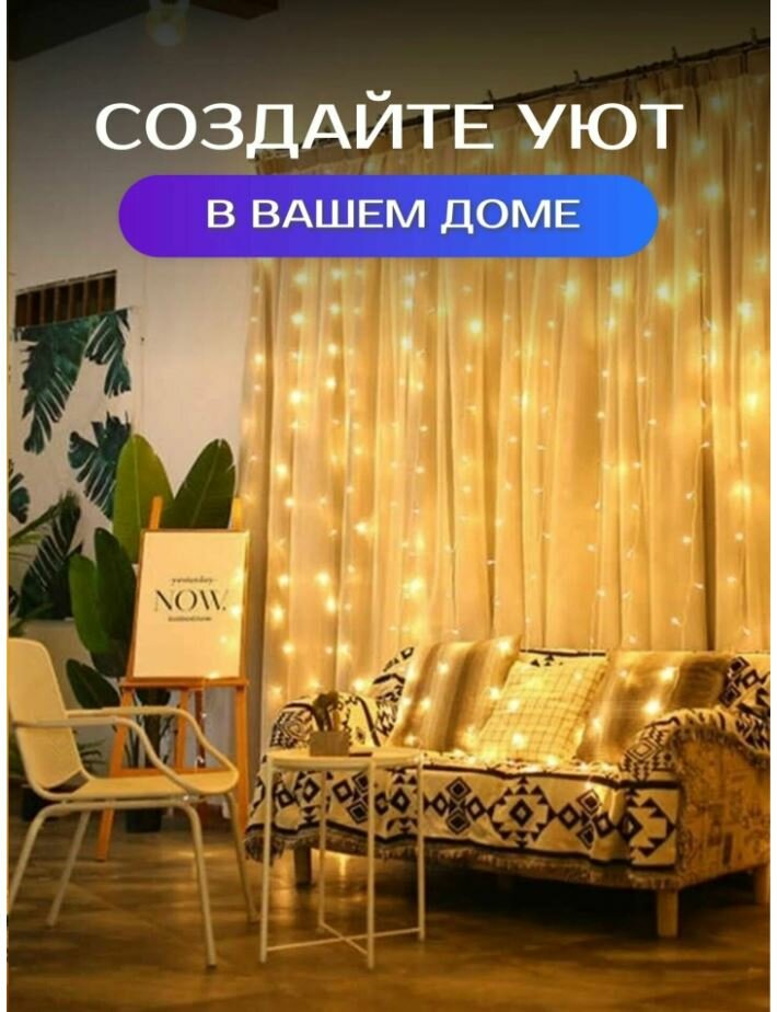 Новогодние украшения светодиодная гирлянда штора, занавес 3х2, желтый интересное: