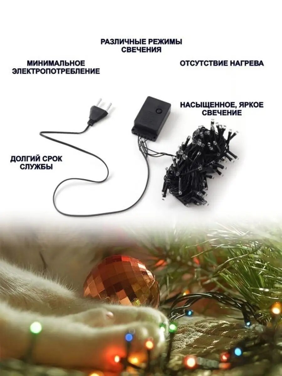 Новогодняя электрогирлянда / гирлянда ргб / разноцветная, 6 метров, 100 Led / 8 режимов интересное: