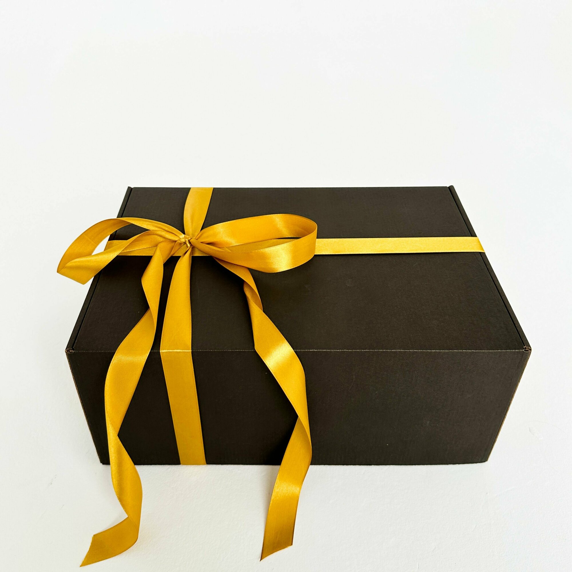 Подарочная коробка GILEV 22х16х8см с наполнителем крафт и черной лентой