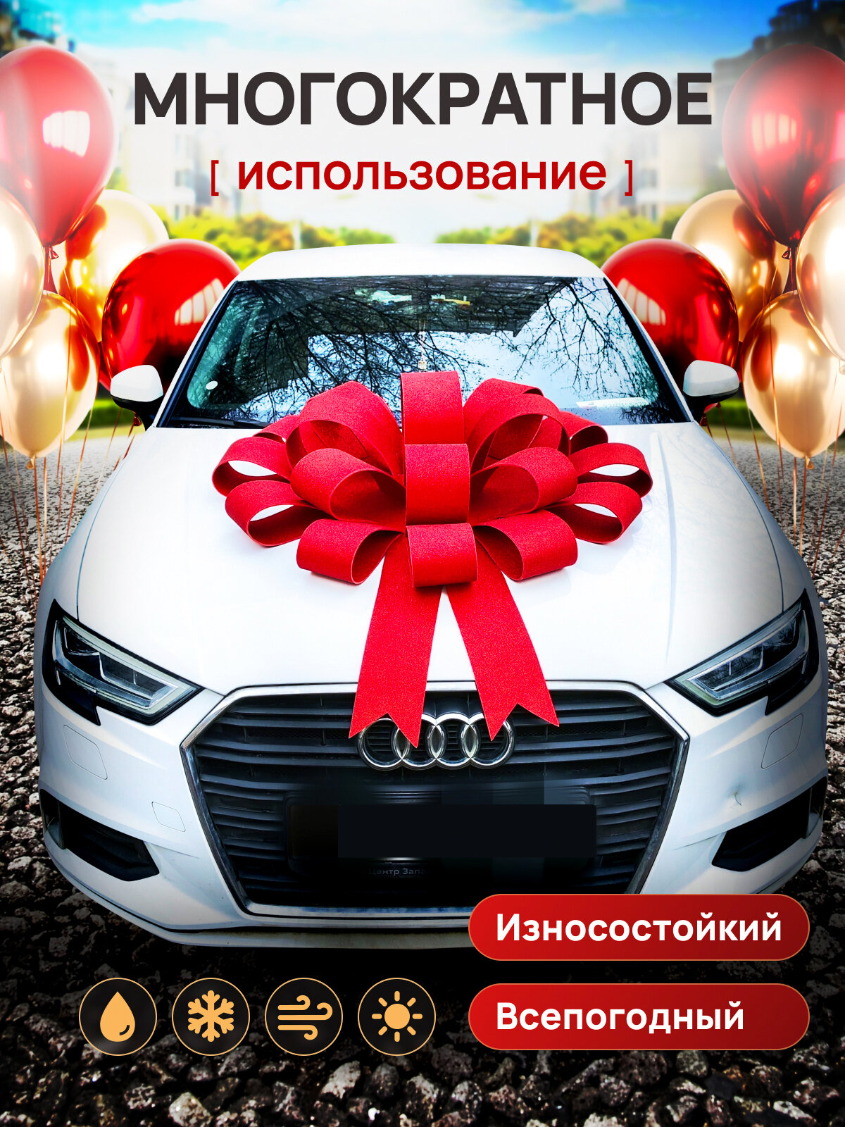 Купить Большой бант на авто / Бант на машину подарочный / Красный глиттерный бант 80 см