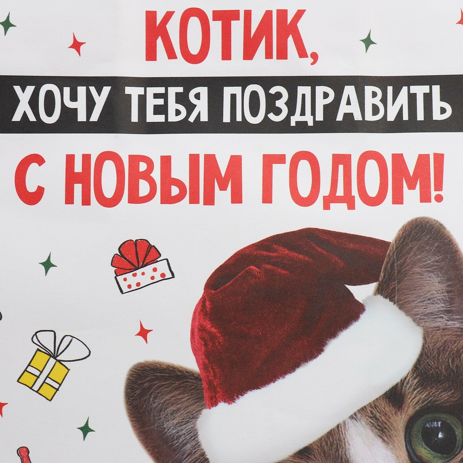 Пакет подарочный новогодний крафтовый «Котик», 22 х 22 х 11 см, Новый год интересное: