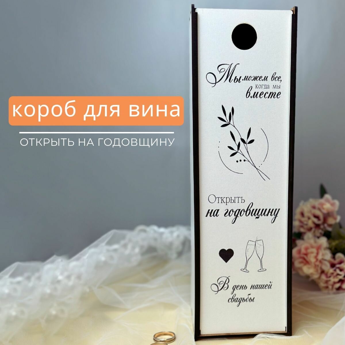 Купить Подарочная коробка деревянная для вина " Открыть на годовщину" Свадьбатека