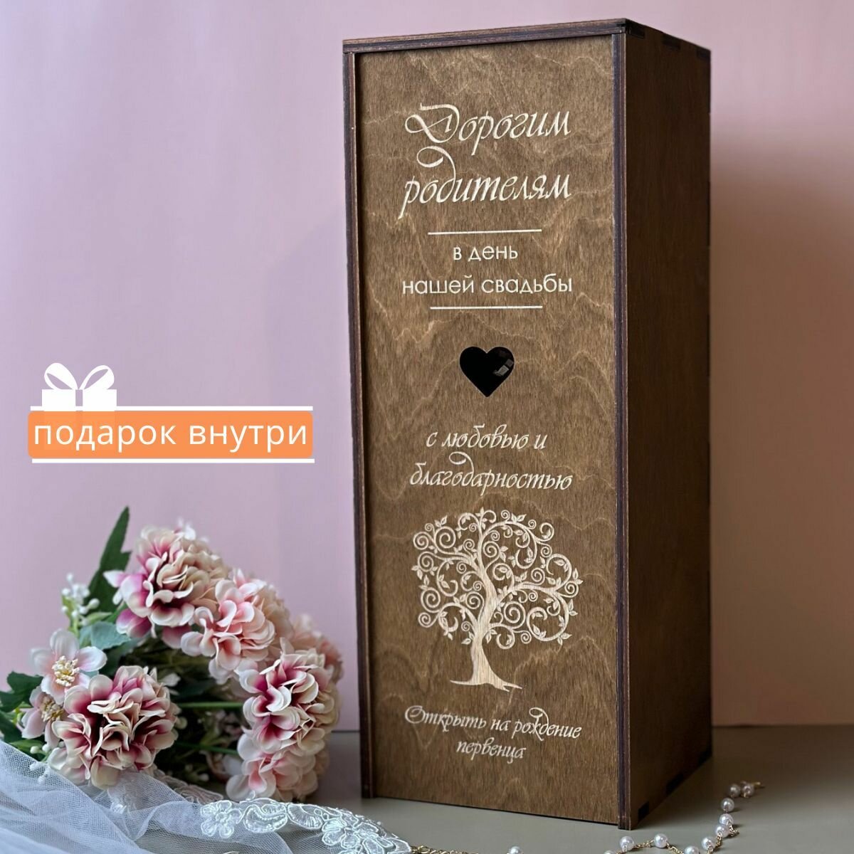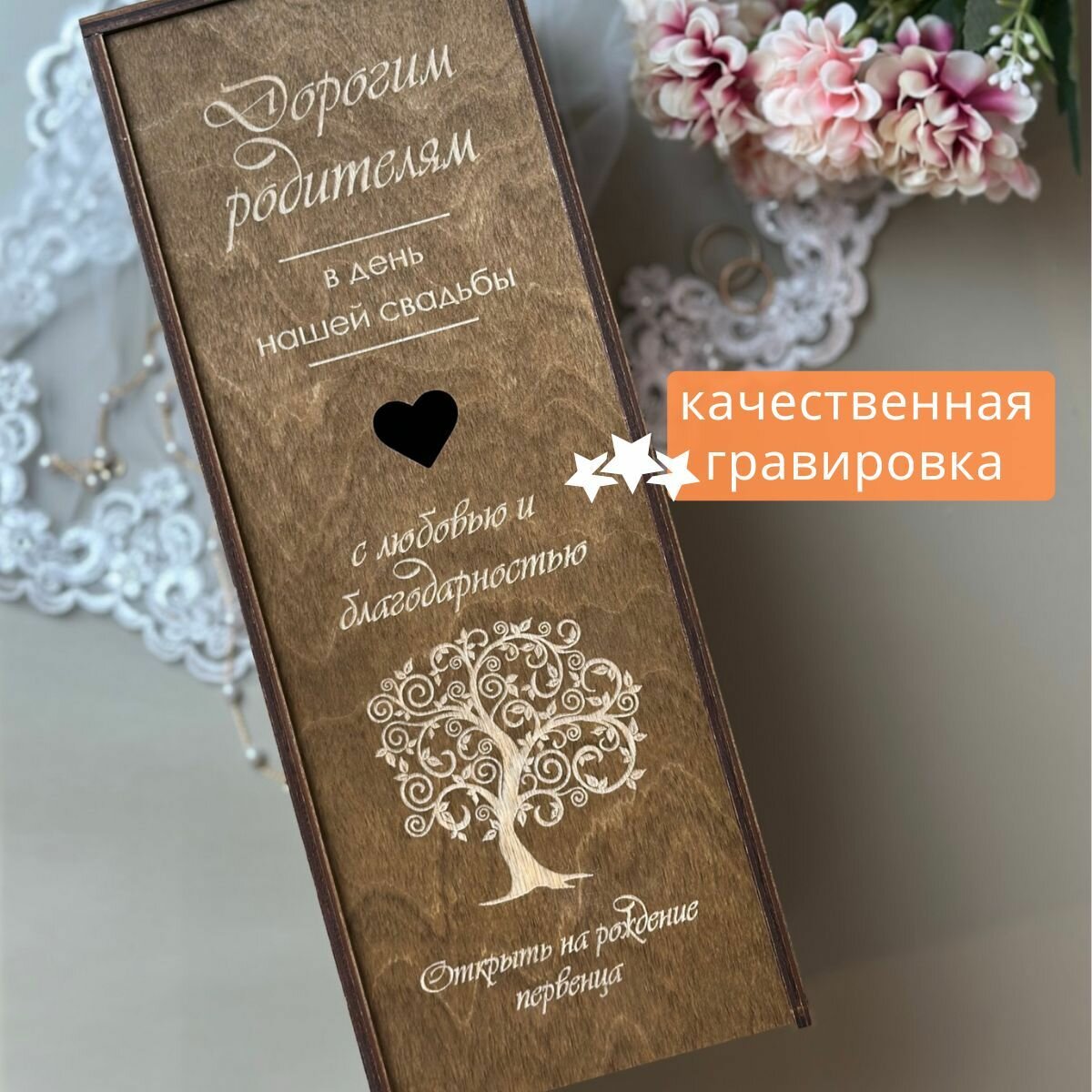 Подарочная коробка деревянная для вина Дорогим родителям" Свадьбатека