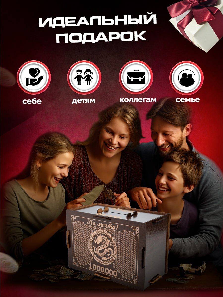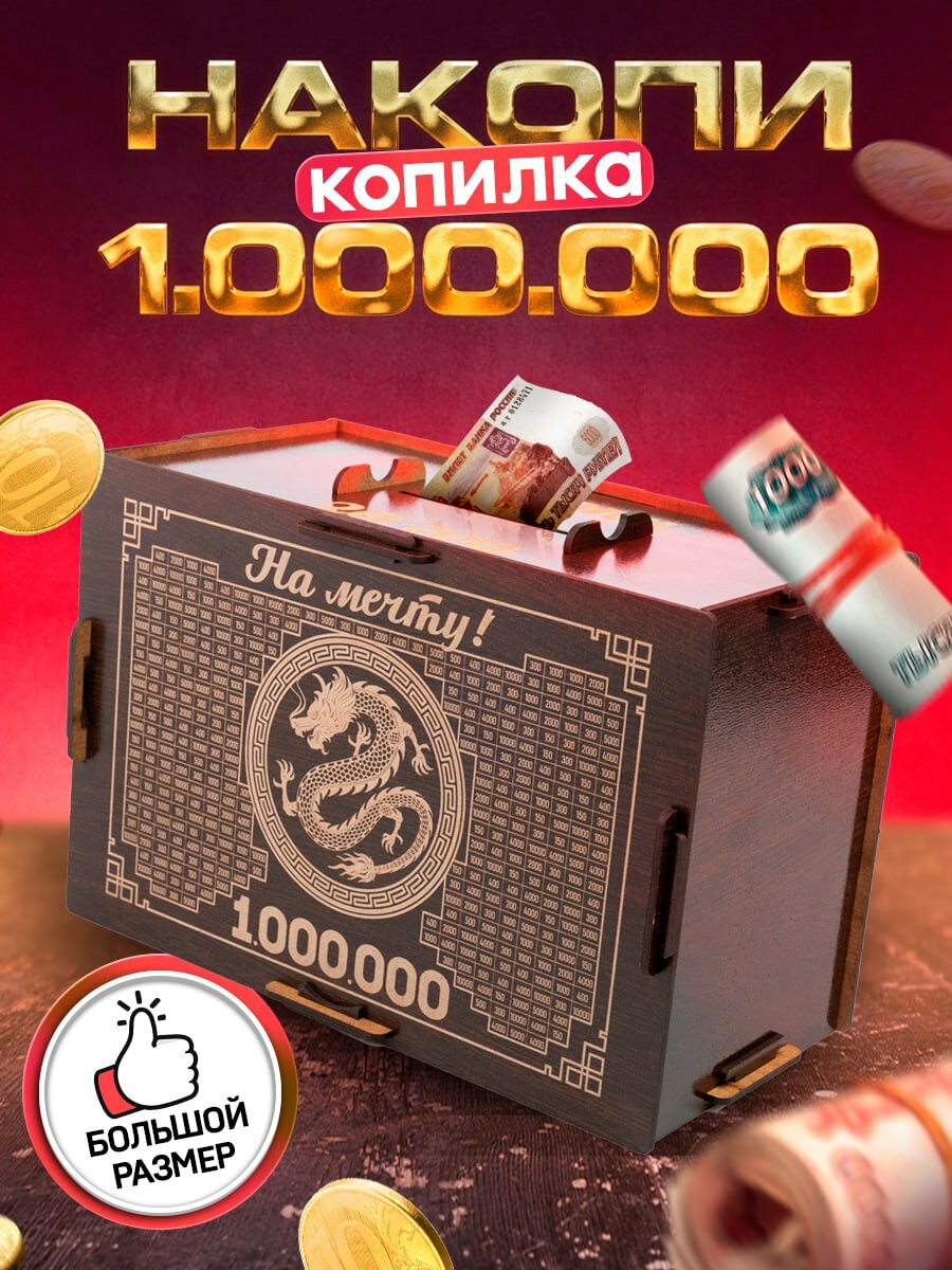 Копилка для денег деревянная "1000000 за 365 дней" интересное:
