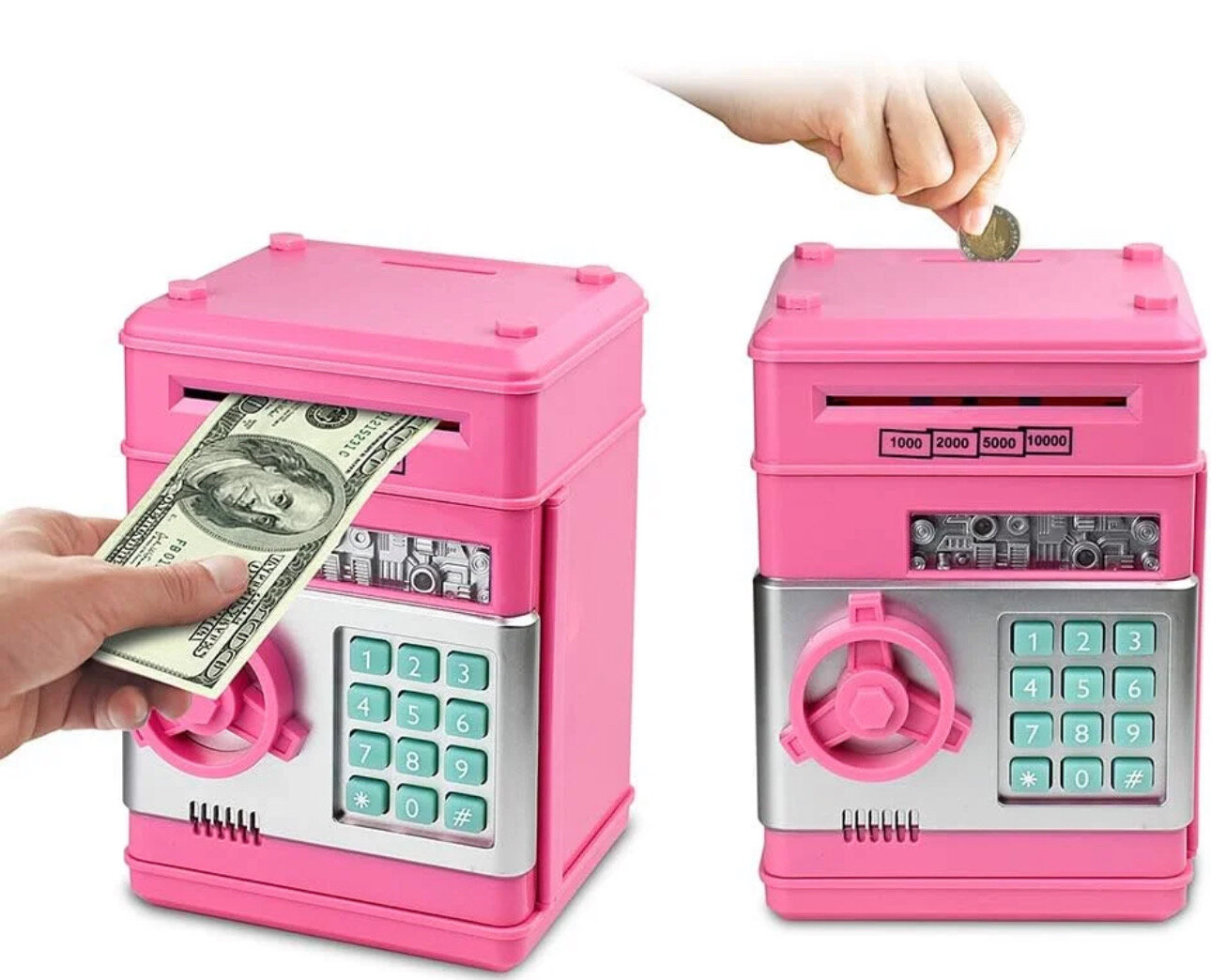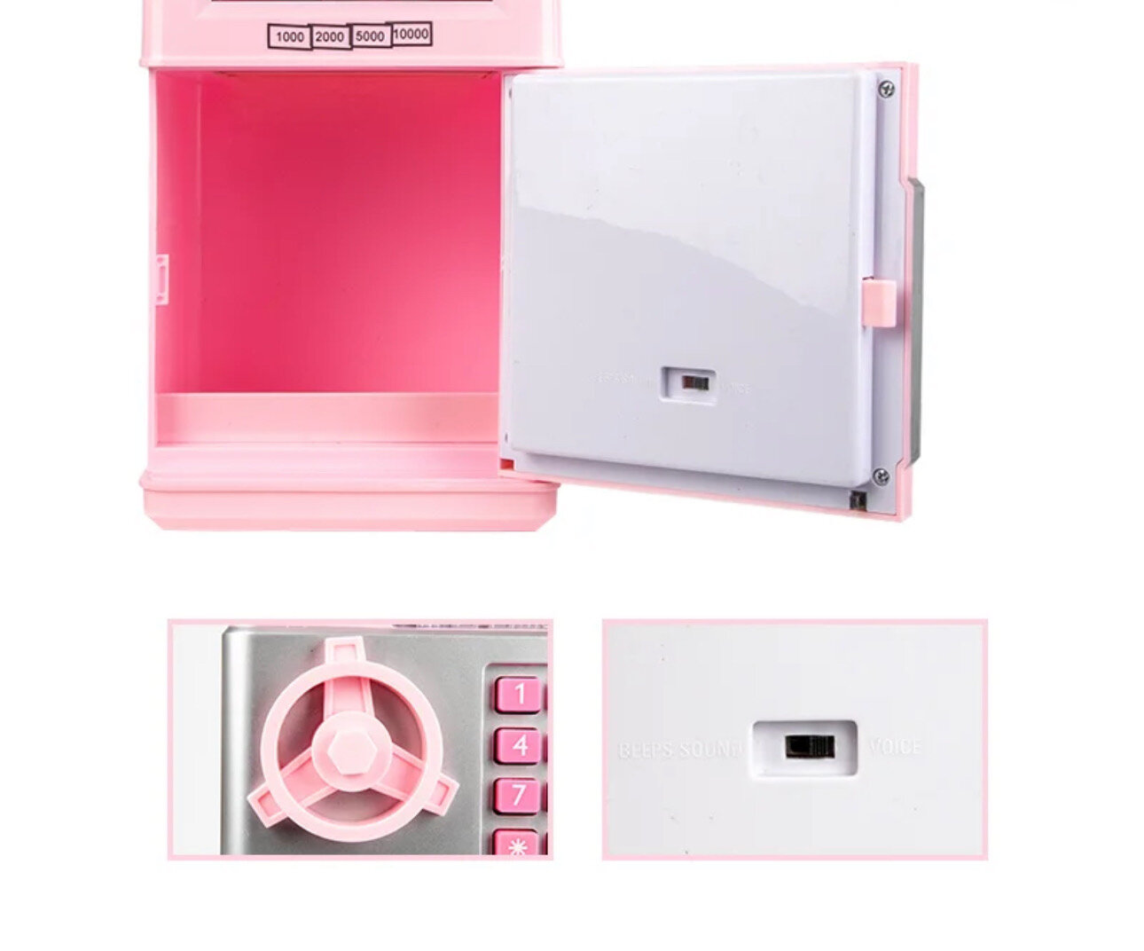 Купить Копилка-сейф для денег /Электронный банкомат с купюроприемником и кодовым замком/ На батарейках/Сейф копилка электронная/Детская/Розовый/19х19х13.5см