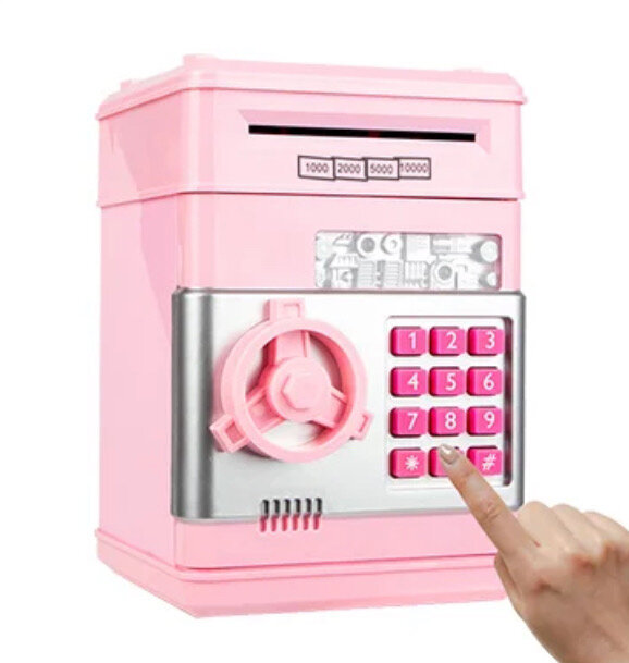 СохранитьКопилка-сейф для денег /Электронный банкомат с купюроприемником и кодовым замком/ На батарейках/Сейф копилка электронная/Детская/Розовый/19х19х13.5см интересное: