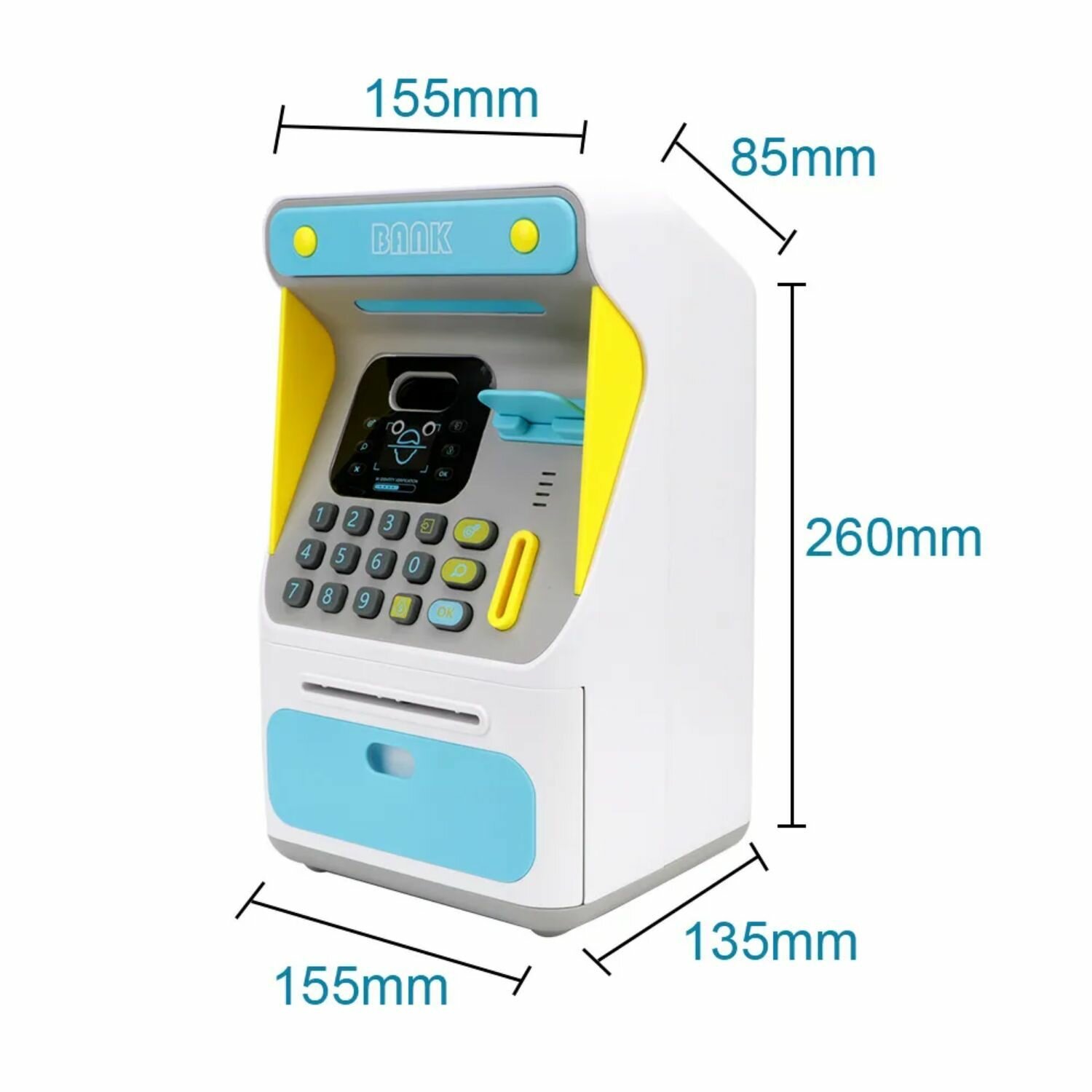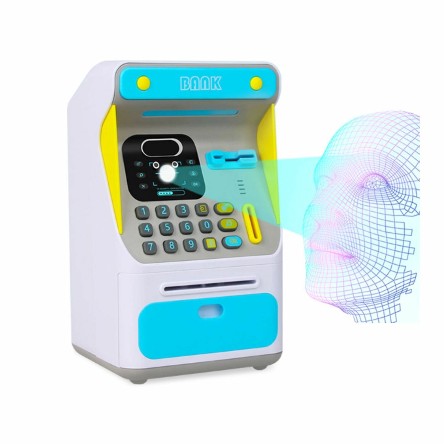 Купить Интерактивная копилка-банкомат с распознованием лица для купюр и монет, синяя
