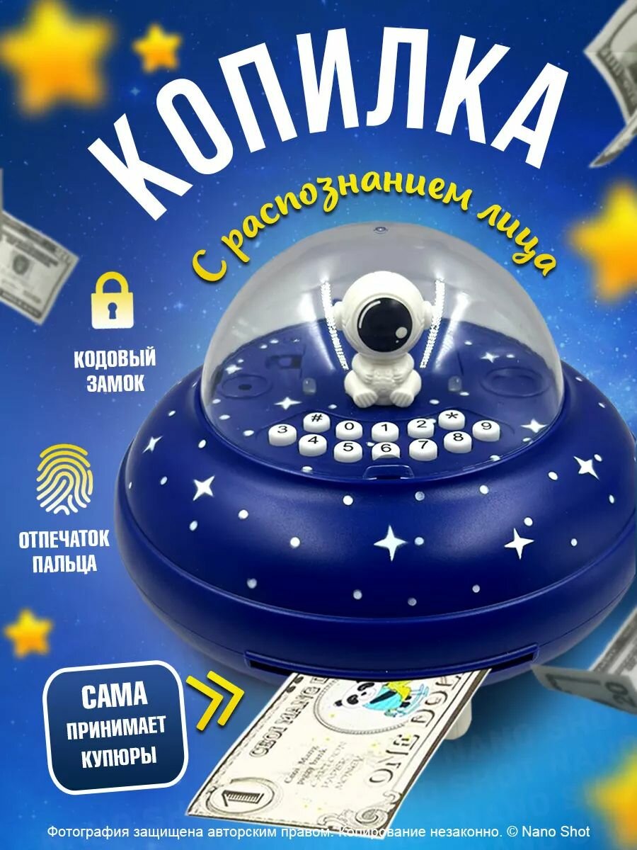 СохранитьИнтерактивная музыкальная электронная копилка-сейф Летающая тарелка НЛО с распознованием лица, с купюроприёмником и с кодовым замком, синяя интересное:
