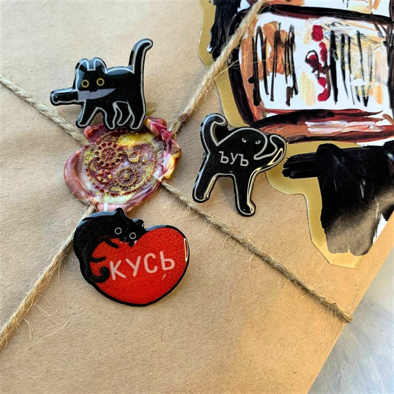 Купить Набор 3Д значков 3 шт, комплект значков , значок на рюкзак , черный кот, кот с ножом, ъуъ, мемный кот