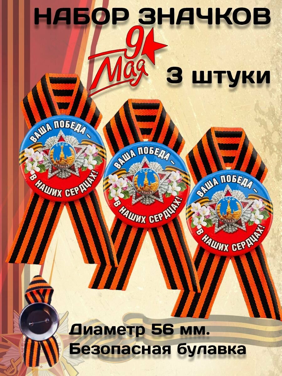 Значок 9 мая с лентой 3 штуки интересное: