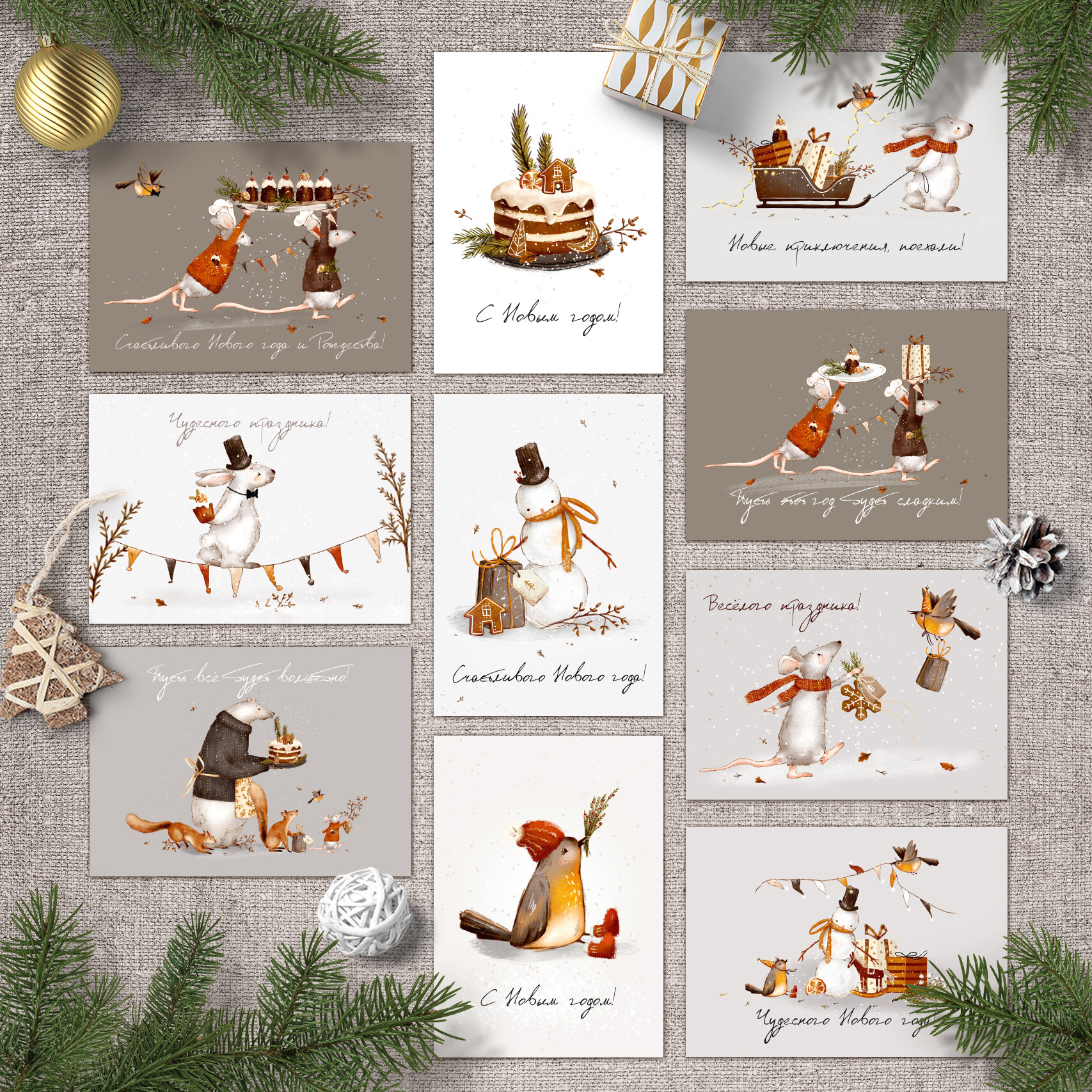 Набор Новогодних мини открыток с очаровательными зверюшками. интересное: