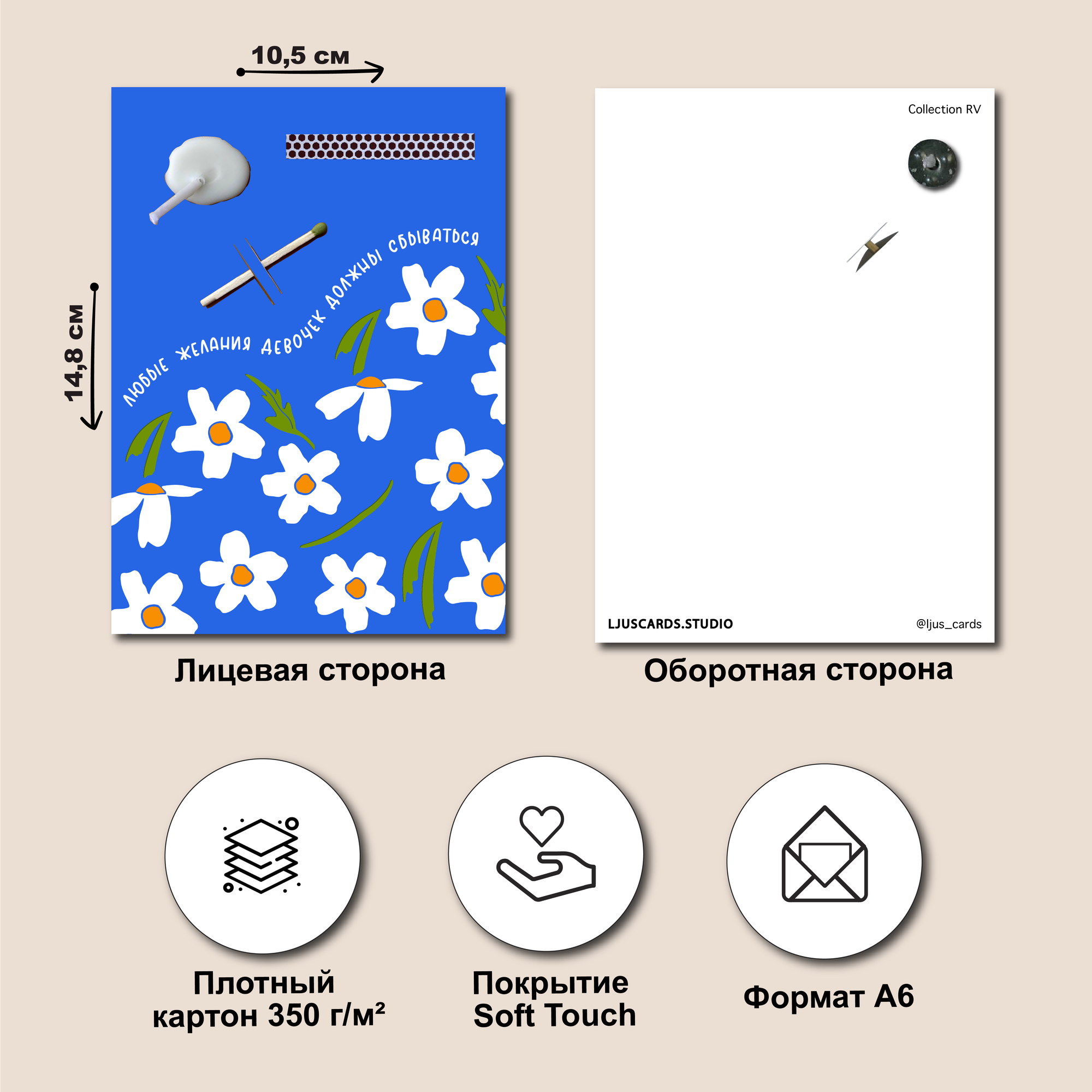 Открытка свечка "Желания девочек", от Вьюнчик, 14,8х10,5 см (А6), стильная поздравительная открытка подруге, цветы