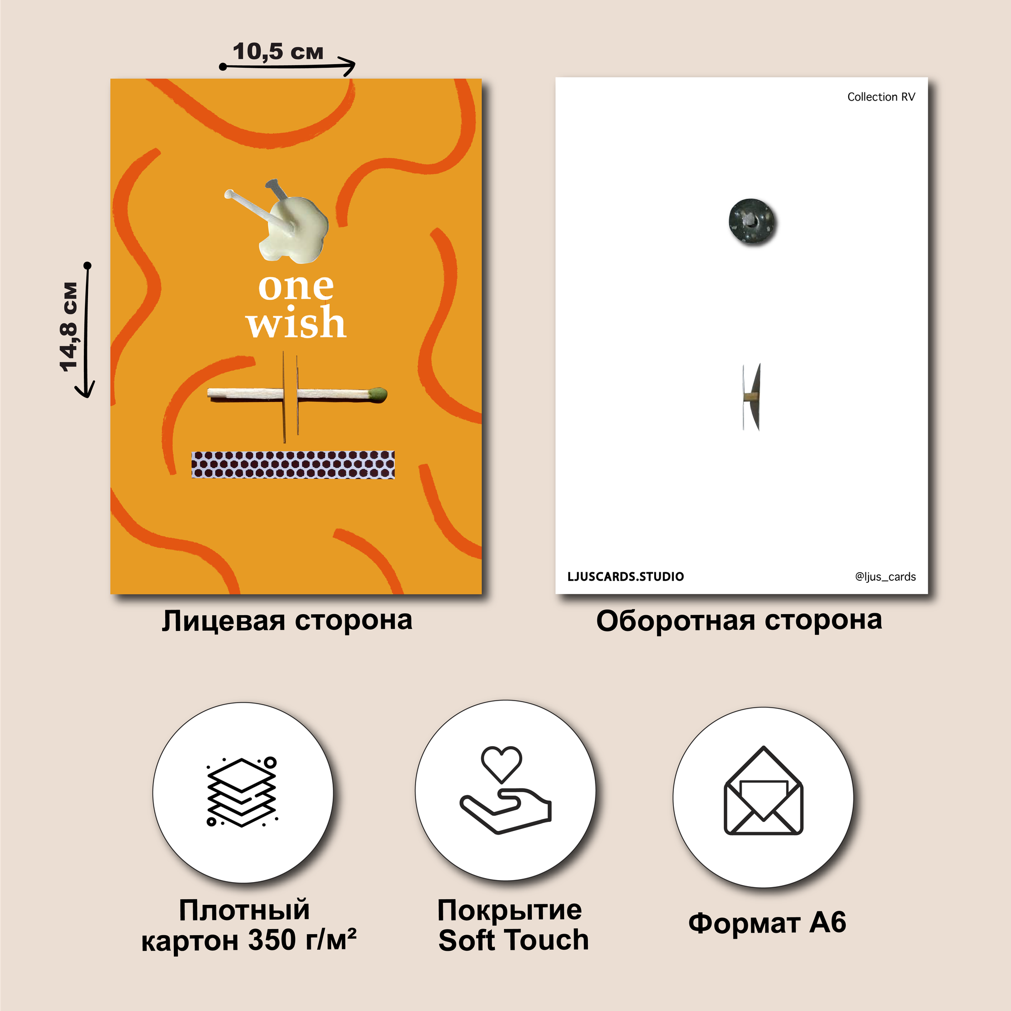 Открытка свечка "One wish", 10х15 см открытка с днем рождения