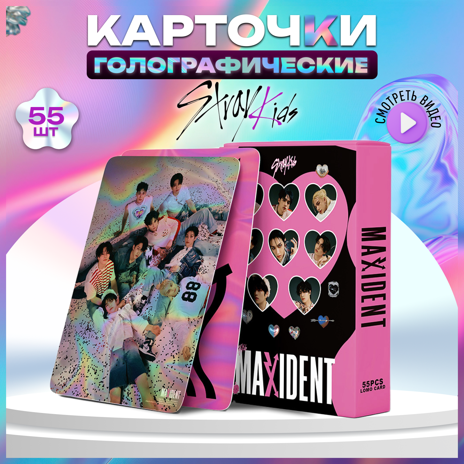Карточки Stray kids кпоп карты "Maxident", 55 шт., разноцветные, размер 8.5х5.5