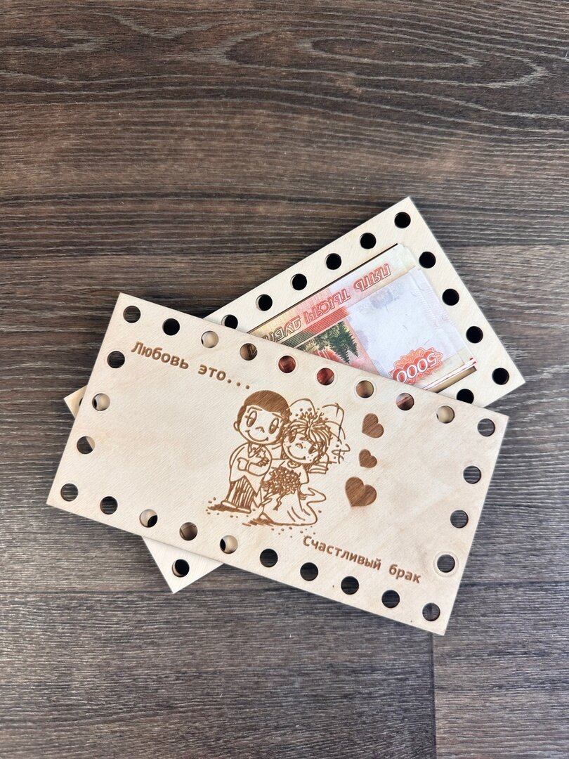 СохранитьКонверт для денег деревянный подарочный с болтами интересное: