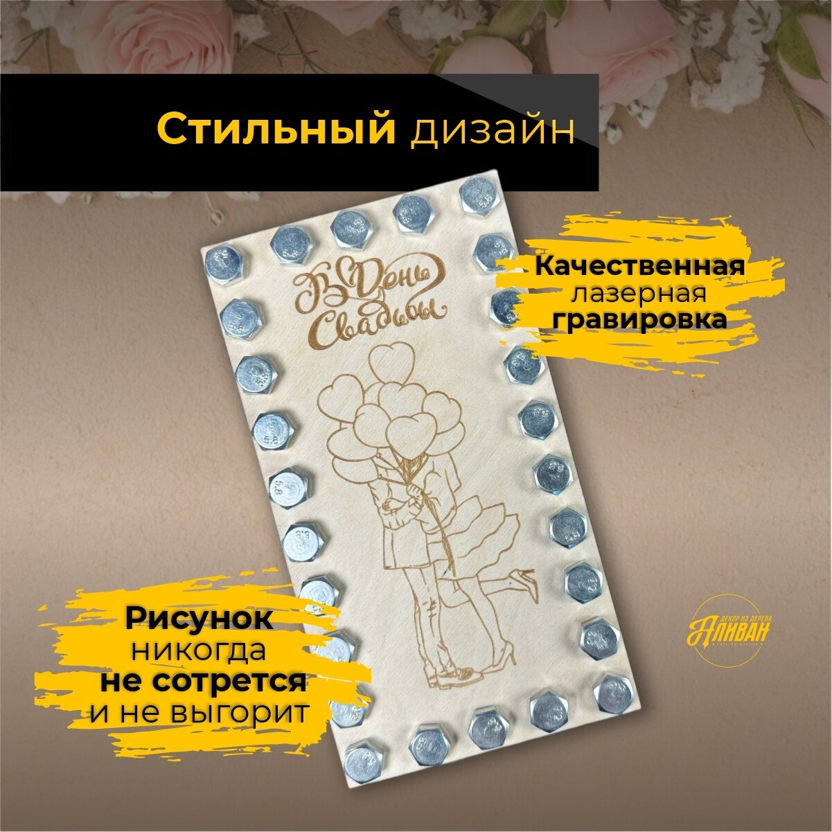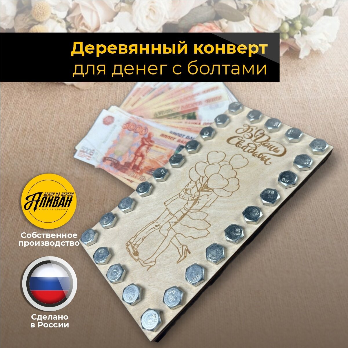 Конверт для денег с болтами, деревянный в натуральном цвете, подарок на свадьбу.