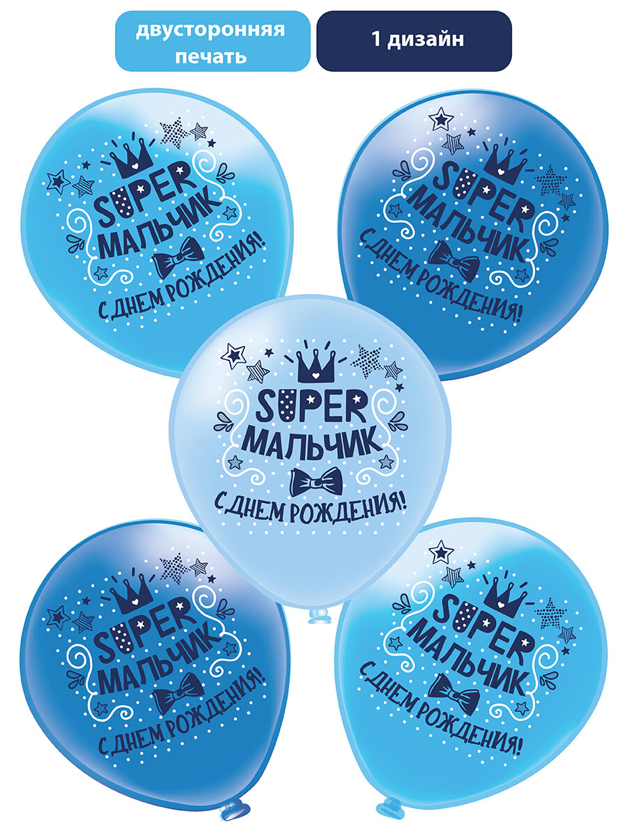 Купить Шарики воздушные Super мальчик для праздника "С Днем Рождения!" 10 шт