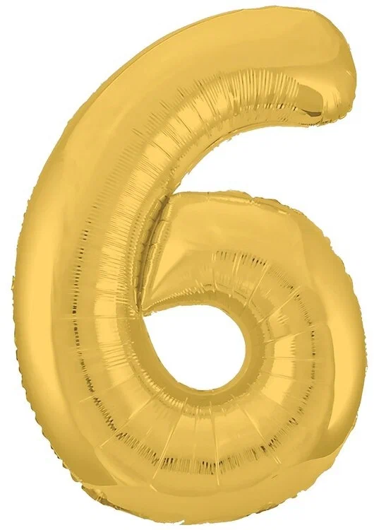 Купить Воздушный шар, фольгированный, "Цифра 6", цвет золотой, 100 см