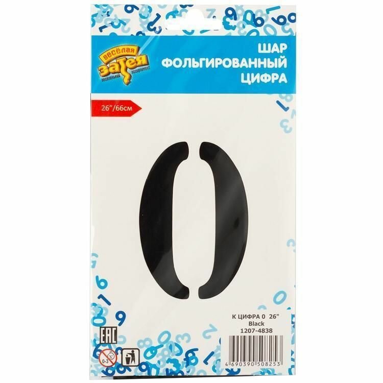 СохранитьВоздушный шар, Весёлая затея, цифра 0 черный 66см интересное: