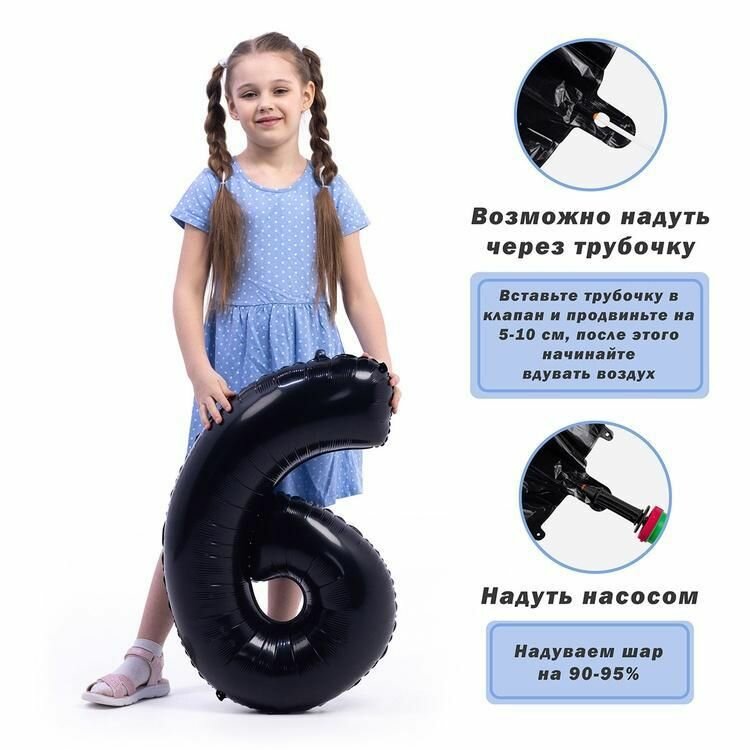 Воздушный шар черная цифра 6 для праздника