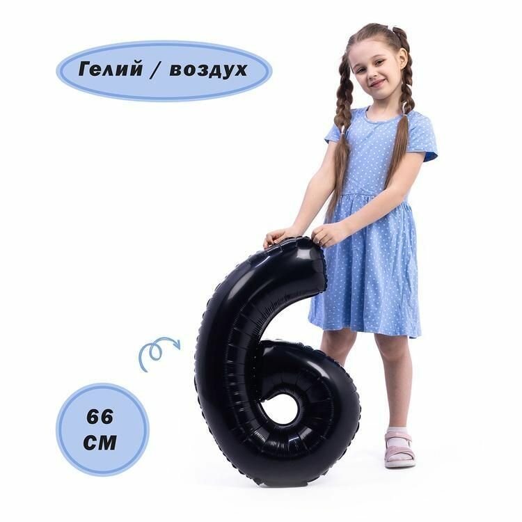 СохранитьВоздушный шар, Весёлая затея, цифра 6 черный 66см интересное: