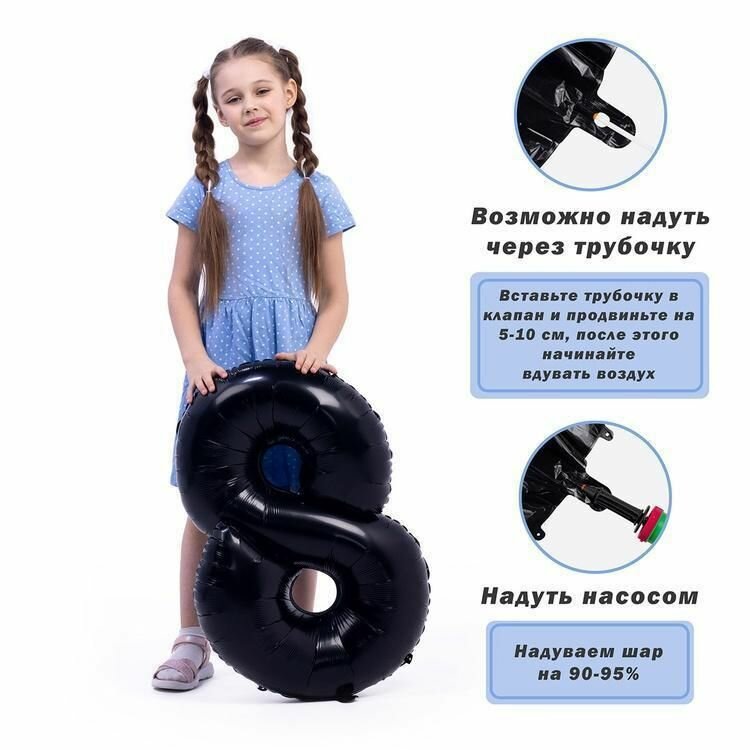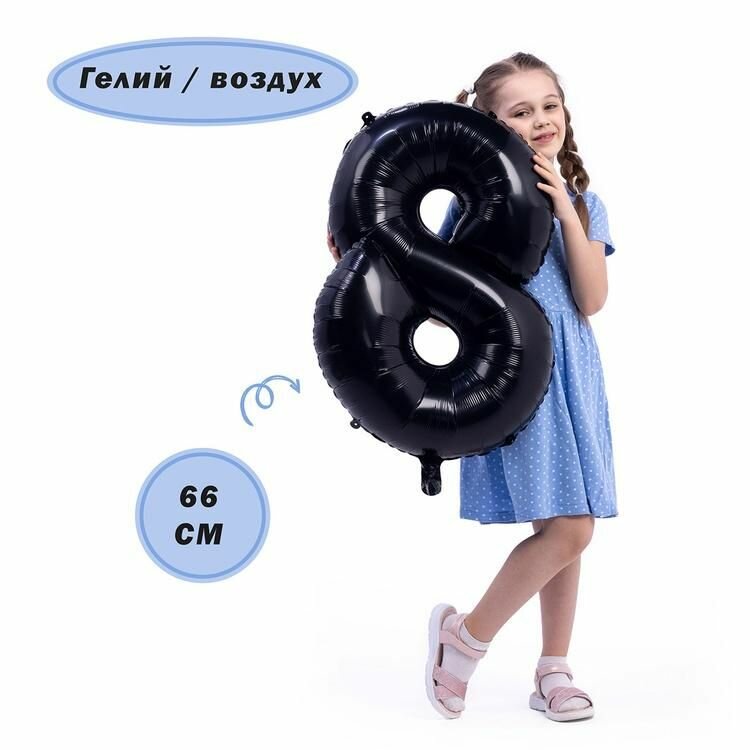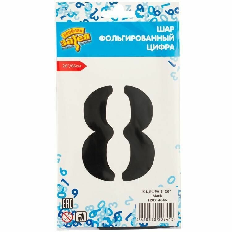 СохранитьВоздушный шар, Весёлая затея, цифра 8 черный 66см интересное: